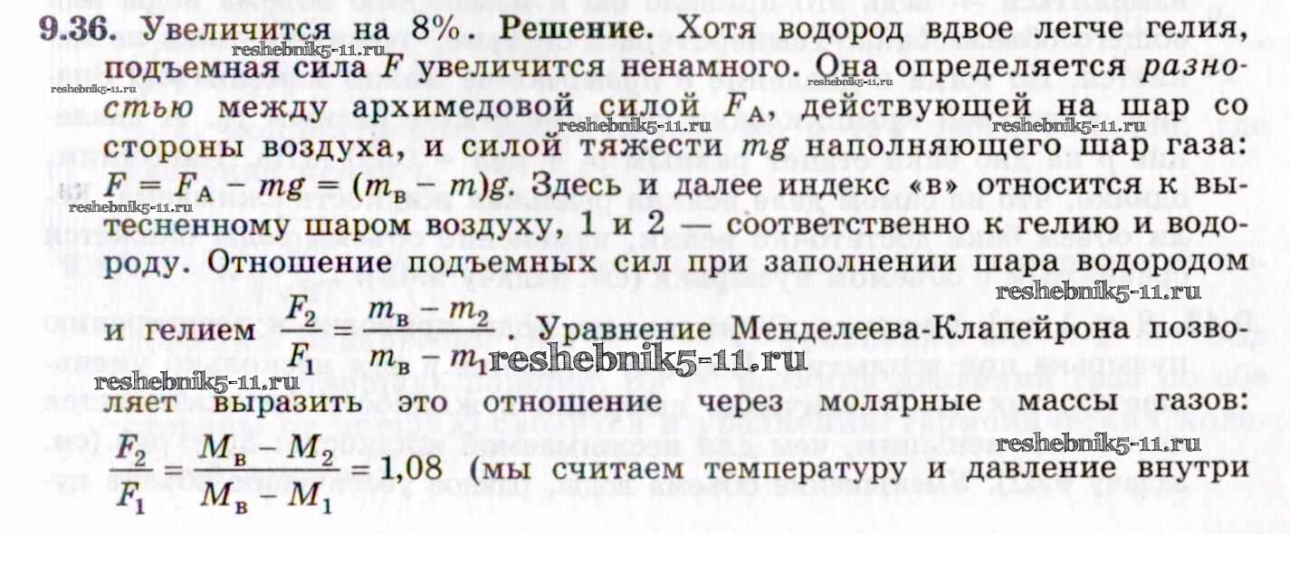 Готовая домашняя работа с ответами по Физике за 8, 9, 10, 11 класс Гельфгат, Генденштейн, Кирик Задачник Илекса 2021 - 9. Молекулярно-кинетическая теория. Свойства газов 9.36