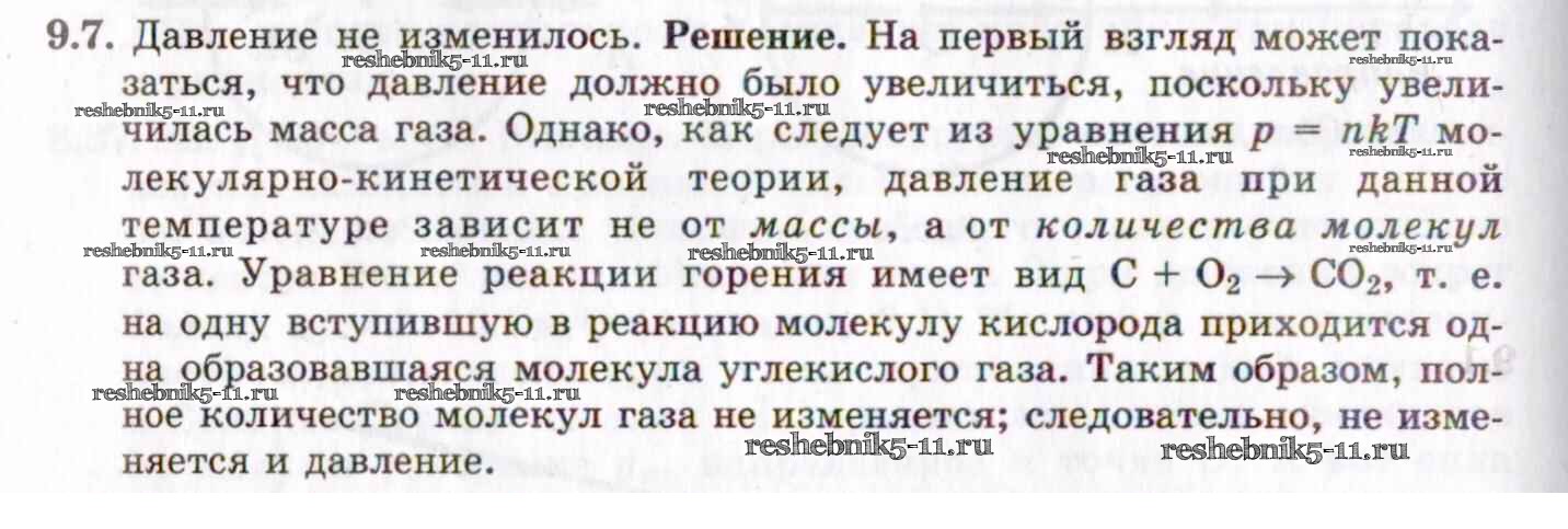 Готовая домашняя работа с ответами по Физике за 8, 9, 10, 11 класс Гельфгат, Генденштейн, Кирик Задачник Илекса 2021 - 9. Молекулярно-кинетическая теория. Свойства газов 9.7