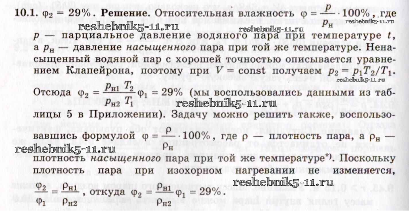 Готовая домашняя работа с ответами по Физике за 8, 9, 10, 11 класс Гельфгат, Генденштейн, Кирик Задачник Илекса 2021 - 10. Пары, жидкости и твердые тела 10.1