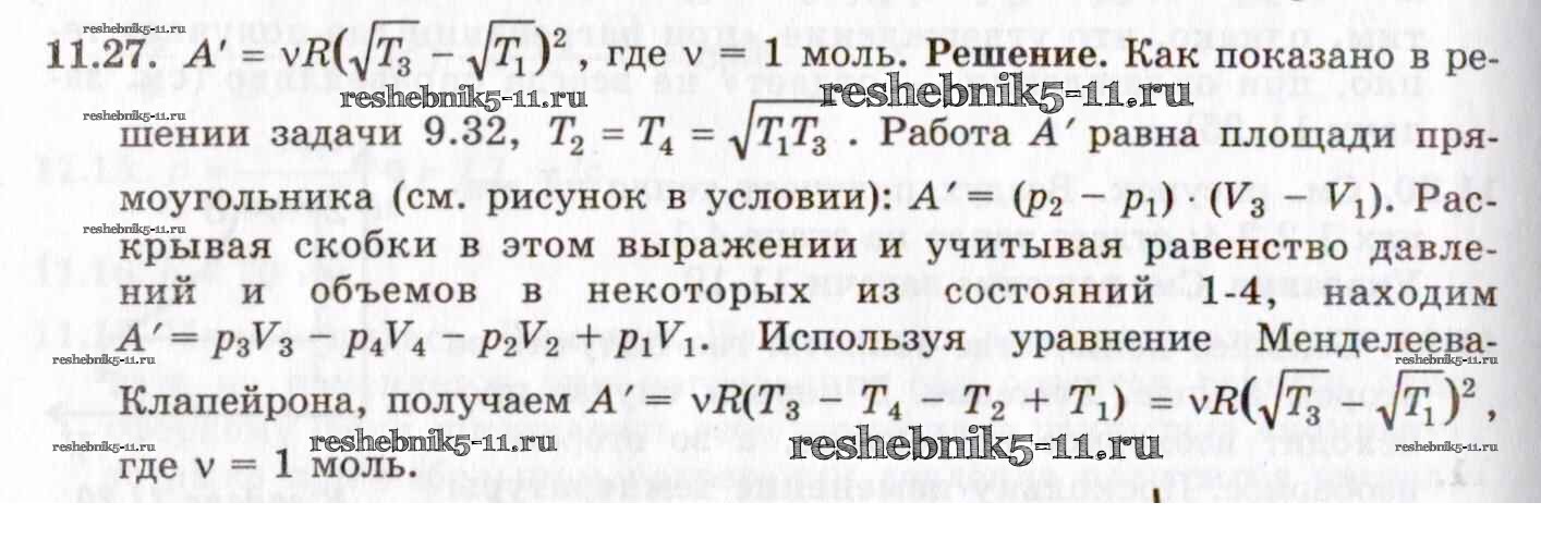 Готовая домашняя работа с ответами по Физике за 8, 9, 10, 11 класс Гельфгат, Генденштейн, Кирик Задачник Илекса 2021 - 11. Законы термодинамики 11.27