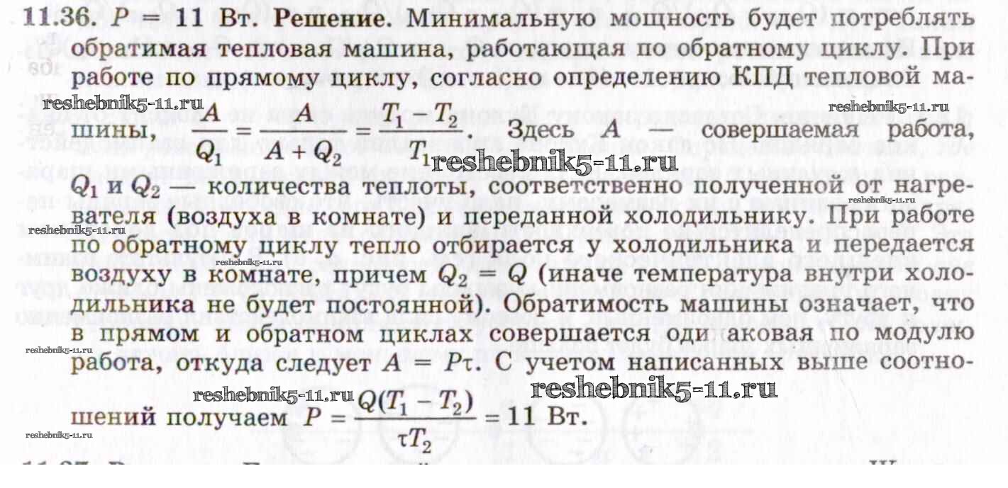 Готовая домашняя работа с ответами по Физике за 8, 9, 10, 11 класс Гельфгат, Генденштейн, Кирик Задачник Илекса 2021 - 11. Законы термодинамики 11.36