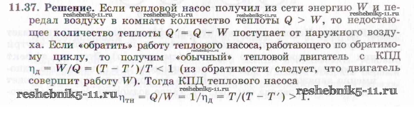 Готовая домашняя работа с ответами по Физике за 8, 9, 10, 11 класс Гельфгат, Генденштейн, Кирик Задачник Илекса 2021 - 11. Законы термодинамики 11.37