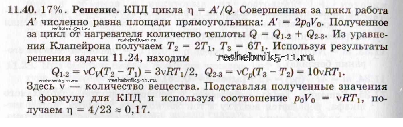 Готовая домашняя работа с ответами по Физике за 8, 9, 10, 11 класс Гельфгат, Генденштейн, Кирик Задачник Илекса 2021 - 11. Законы термодинамики 11.40
