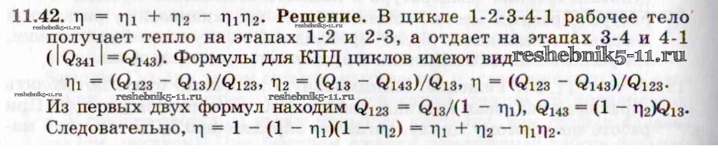 Готовая домашняя работа с ответами по Физике за 8, 9, 10, 11 класс Гельфгат, Генденштейн, Кирик Задачник Илекса 2021 - 11. Законы термодинамики 11.42