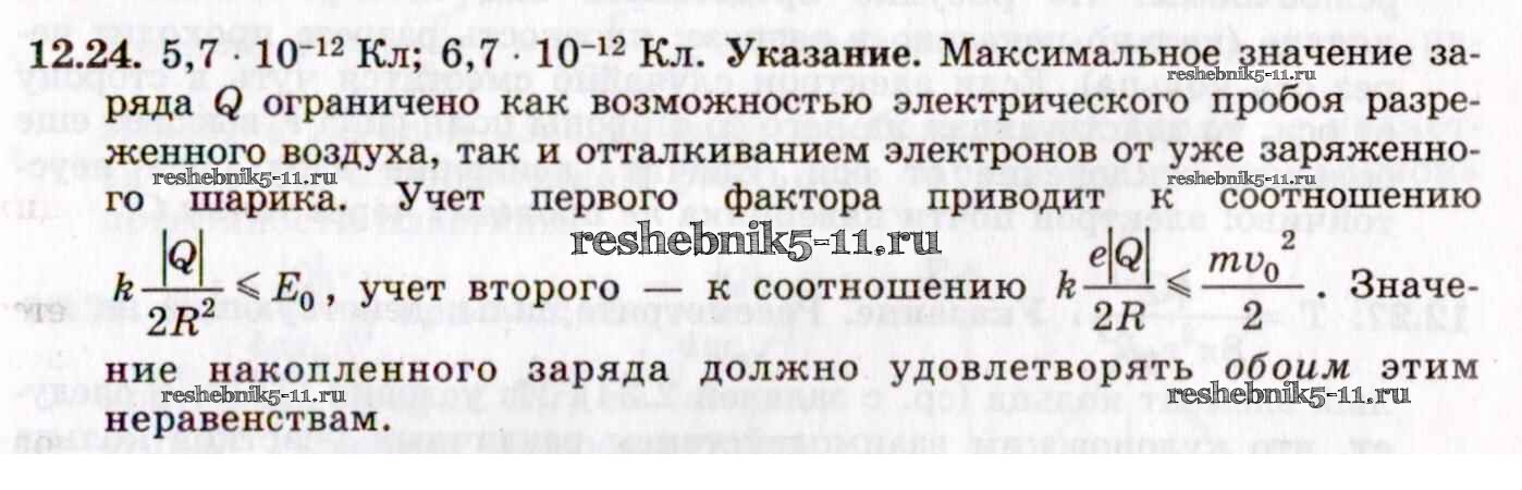 Готовая домашняя работа с ответами по Физике за 8, 9, 10, 11 класс Гельфгат, Генденштейн, Кирик Задачник Илекса 2021 - 12. Электростатика 12.24