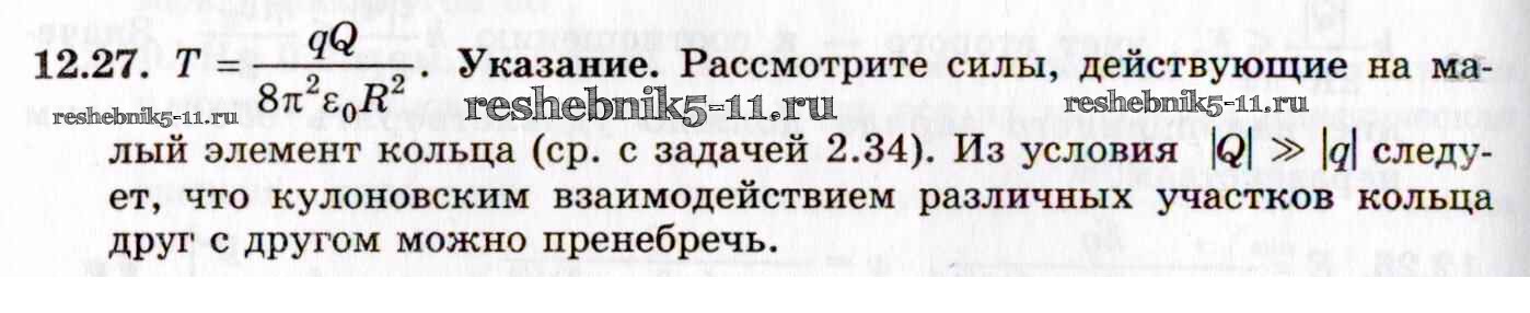 Готовая домашняя работа с ответами по Физике за 8, 9, 10, 11 класс Гельфгат, Генденштейн, Кирик Задачник Илекса 2021 - 12. Электростатика 12.27
