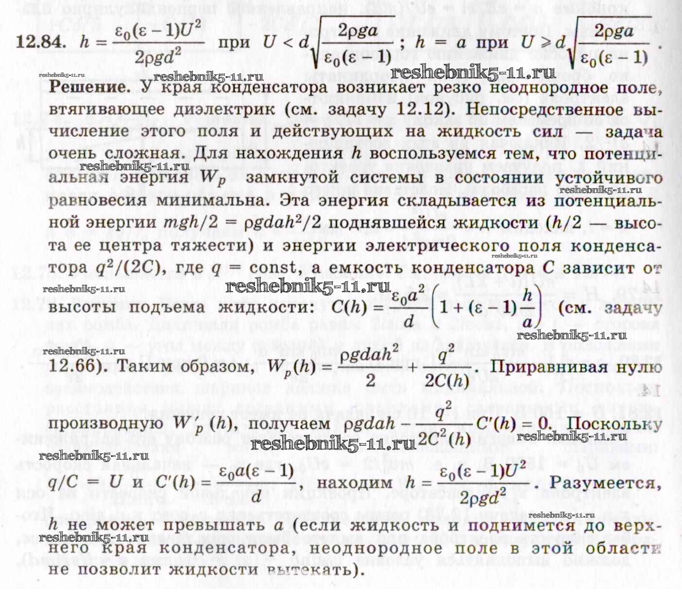Готовая домашняя работа с ответами по Физике за 8, 9, 10, 11 класс Гельфгат, Генденштейн, Кирик Задачник Илекса 2021 - 12. Электростатика 12.84