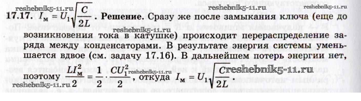 Готовая домашняя работа с ответами по Физике за 8, 9, 10, 11 класс Гельфгат, Генденштейн, Кирик Задачник Илекса 2021 - 17. Электромагнитные колебания и волны. Переменный ток 17.17
