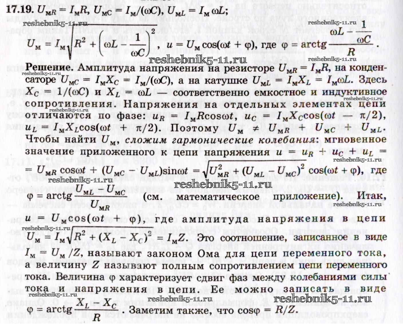 Готовая домашняя работа с ответами по Физике за 8, 9, 10, 11 класс Гельфгат, Генденштейн, Кирик Задачник Илекса 2021 - 17. Электромагнитные колебания и волны. Переменный ток 17.19
