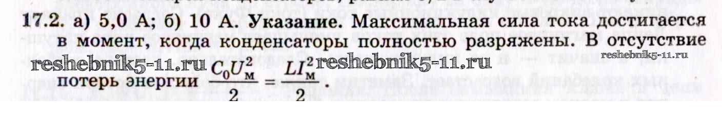 Готовая домашняя работа с ответами по Физике за 8, 9, 10, 11 класс Гельфгат, Генденштейн, Кирик Задачник Илекса 2021 - 17. Электромагнитные колебания и волны. Переменный ток 17.2