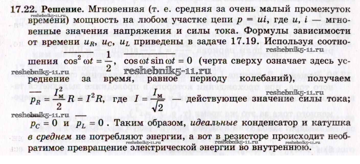 Готовая домашняя работа с ответами по Физике за 8, 9, 10, 11 класс Гельфгат, Генденштейн, Кирик Задачник Илекса 2021 - 17. Электромагнитные колебания и волны. Переменный ток 17.22