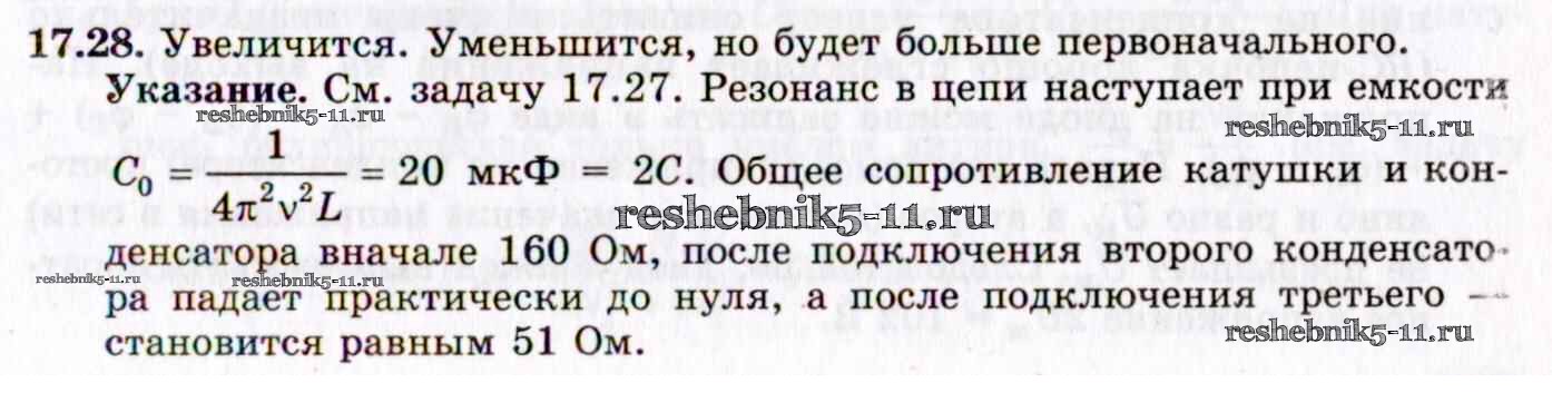 Готовая домашняя работа с ответами по Физике за 8, 9, 10, 11 класс Гельфгат, Генденштейн, Кирик Задачник Илекса 2021 - 17. Электромагнитные колебания и волны. Переменный ток 17.28