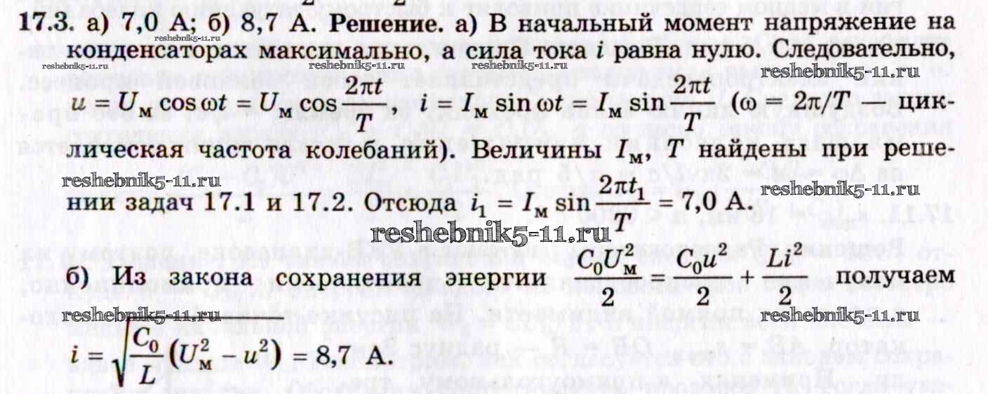 Готовая домашняя работа с ответами по Физике за 8, 9, 10, 11 класс Гельфгат, Генденштейн, Кирик Задачник Илекса 2021 - 17. Электромагнитные колебания и волны. Переменный ток 17.3