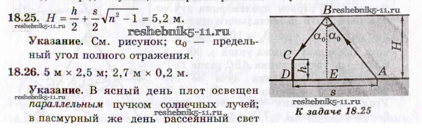 Готовая домашняя работа с ответами по Физике за 8, 9, 10, 11 класс Гельфгат, Генденштейн, Кирик Задачник Илекса 2021 - 18. Законы геометрической оптики 18.25