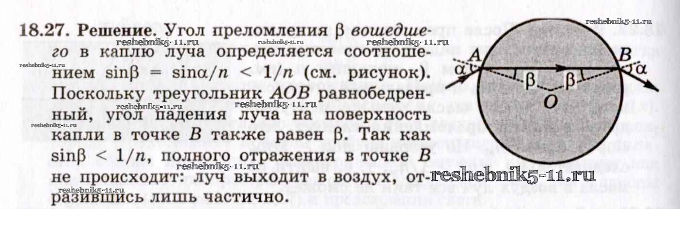 Готовая домашняя работа с ответами по Физике за 8, 9, 10, 11 класс Гельфгат, Генденштейн, Кирик Задачник Илекса 2021 - 18. Законы геометрической оптики 18.27
