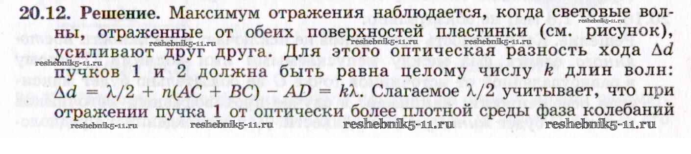 Готовая домашняя работа с ответами по Физике за 8, 9, 10, 11 класс Гельфгат, Генденштейн, Кирик Задачник Илекса 2021 - 20. Волновая оптика 20.12