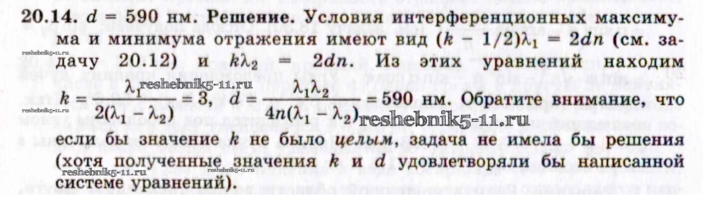 Готовая домашняя работа с ответами по Физике за 8, 9, 10, 11 класс Гельфгат, Генденштейн, Кирик Задачник Илекса 2021 - 20. Волновая оптика 20.14