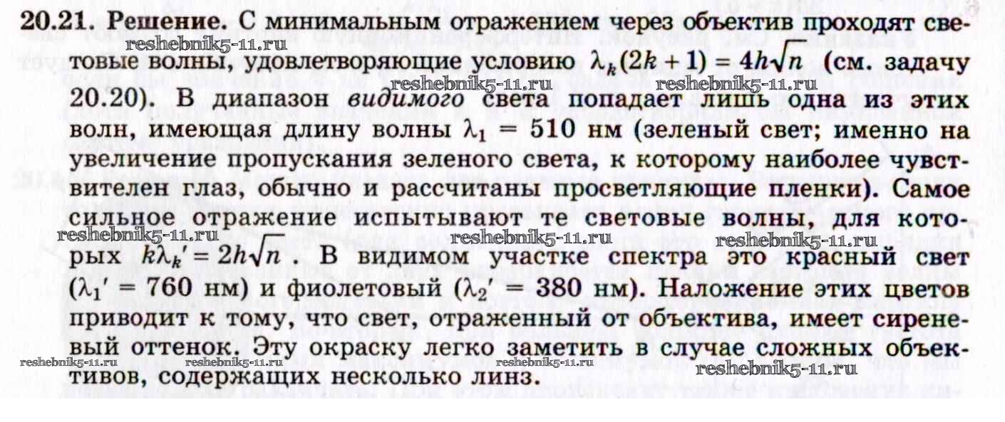 Готовая домашняя работа с ответами по Физике за 8, 9, 10, 11 класс Гельфгат, Генденштейн, Кирик Задачник Илекса 2021 - 20. Волновая оптика 20.21