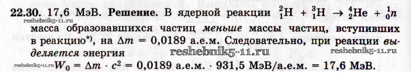 Готовая домашняя работа с ответами по Физике за 8, 9, 10, 11 класс Гельфгат, Генденштейн, Кирик Задачник Илекса 2021 - 22. Кванты, атомы, ядра, частицы 22.30