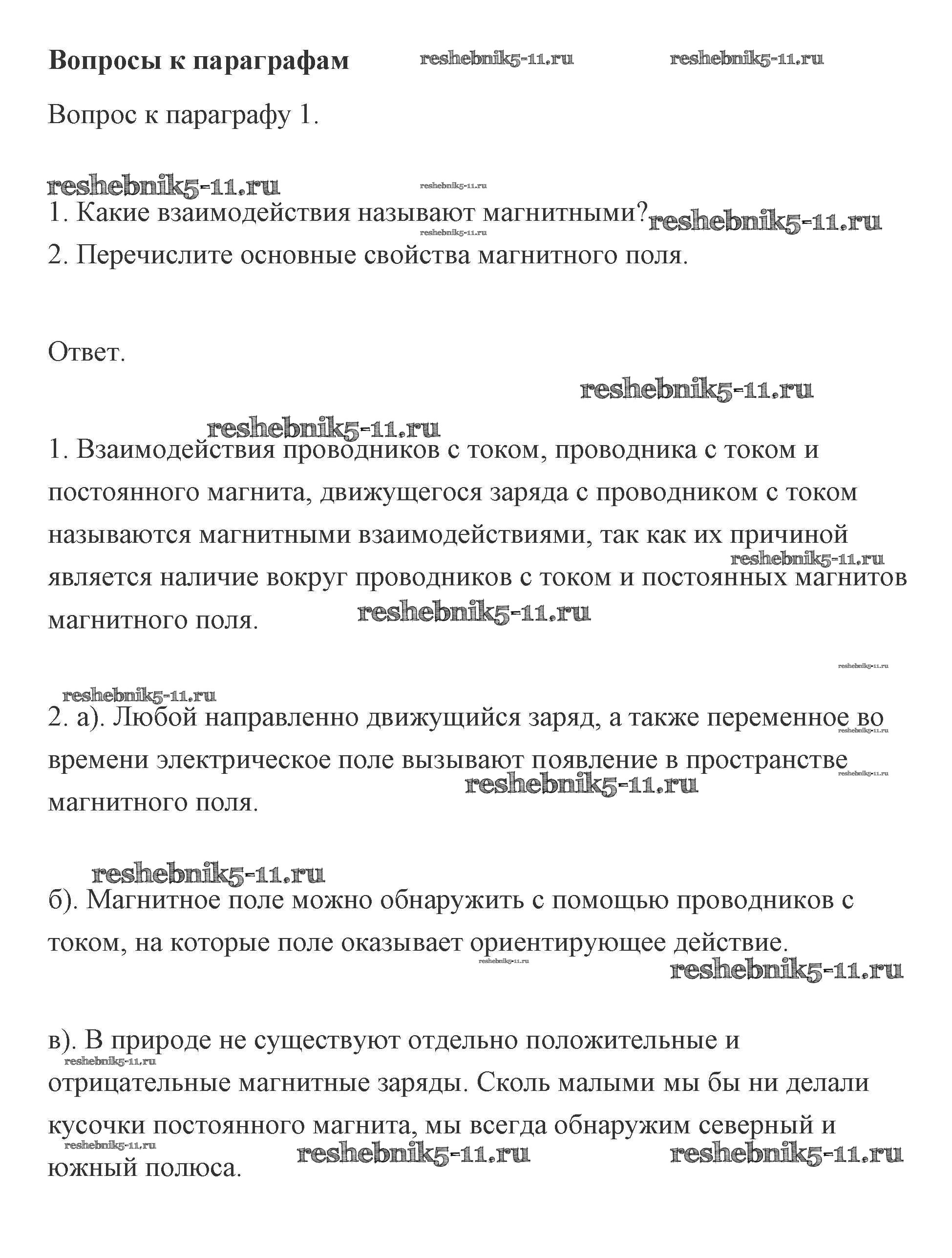 Готовая домашняя работа с ответами по Физике за 11 класс Мякишев, Буховцев, Чаругин, Николаева, Парфеньтьева Учебник Базовый и углубленный уровень Просвещение 2019 ФГОС - Вопросы 1