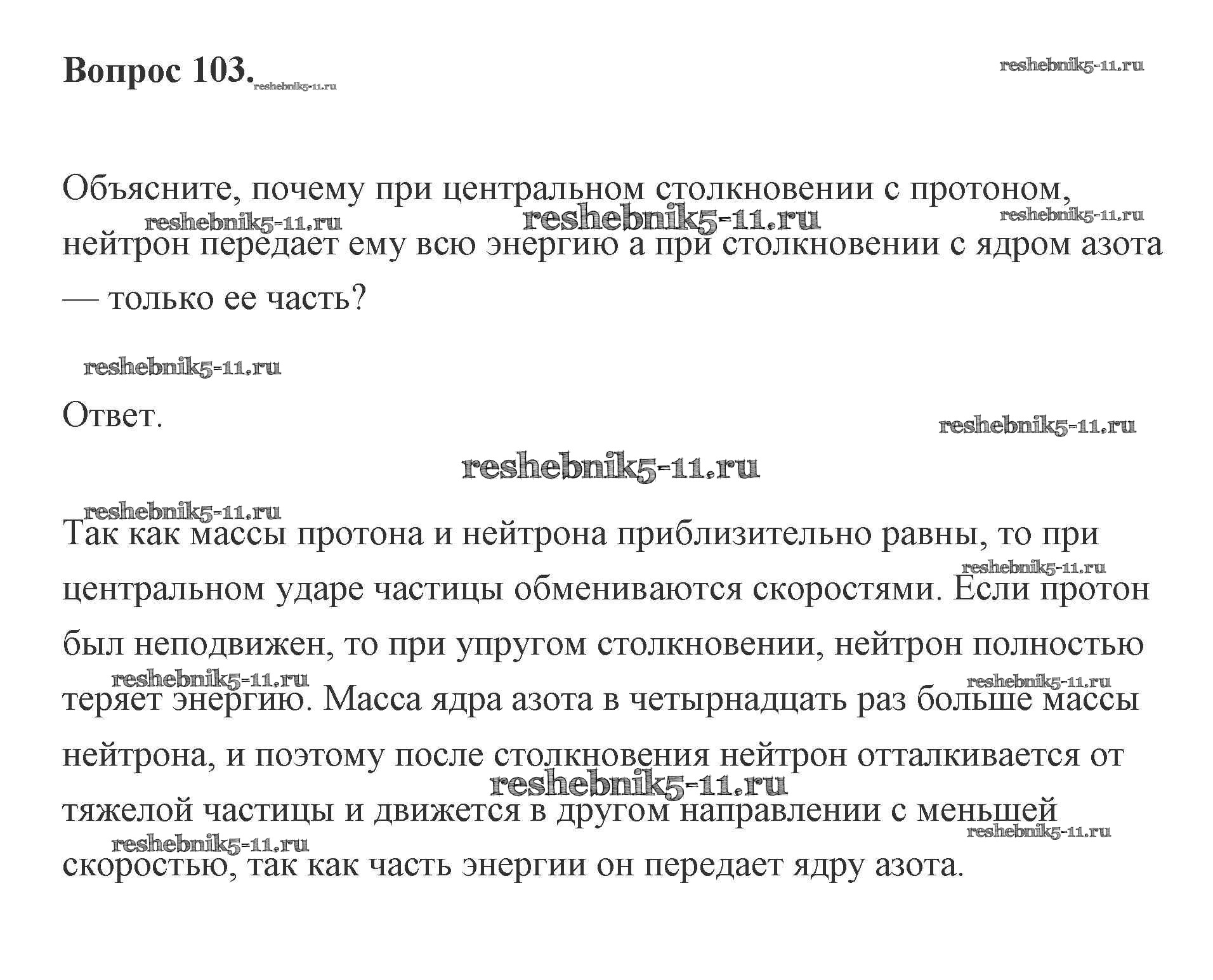 Готовая домашняя работа с ответами по Физике за 11 класс Мякишев, Буховцев, Чаругин, Николаева, Парфеньтьева Учебник Базовый и углубленный уровень Просвещение 2019 ФГОС - Вопросы 103
