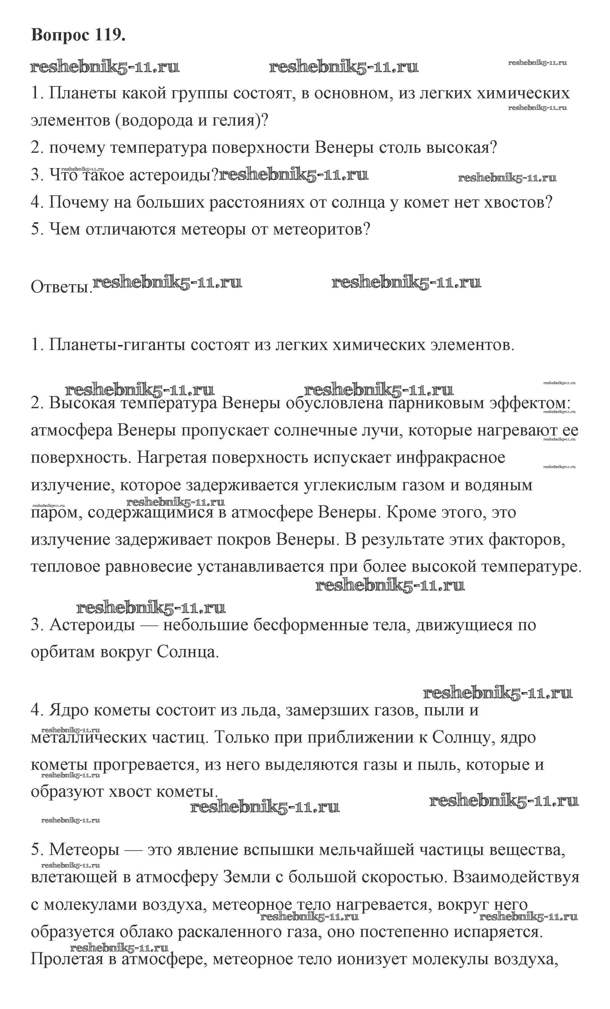 Готовая домашняя работа с ответами по Физике за 11 класс Мякишев, Буховцев, Чаругин, Николаева, Парфеньтьева Учебник Базовый и углубленный уровень Просвещение 2019 ФГОС - Вопросы 119