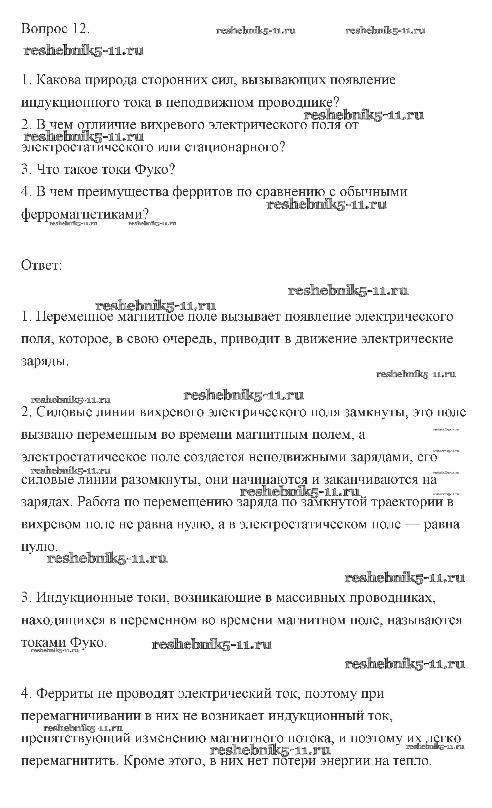 Готовая домашняя работа с ответами по Физике за 11 класс Мякишев, Буховцев, Чаругин, Николаева, Парфеньтьева Учебник Базовый и углубленный уровень Просвещение 2019 ФГОС - Вопросы 12
