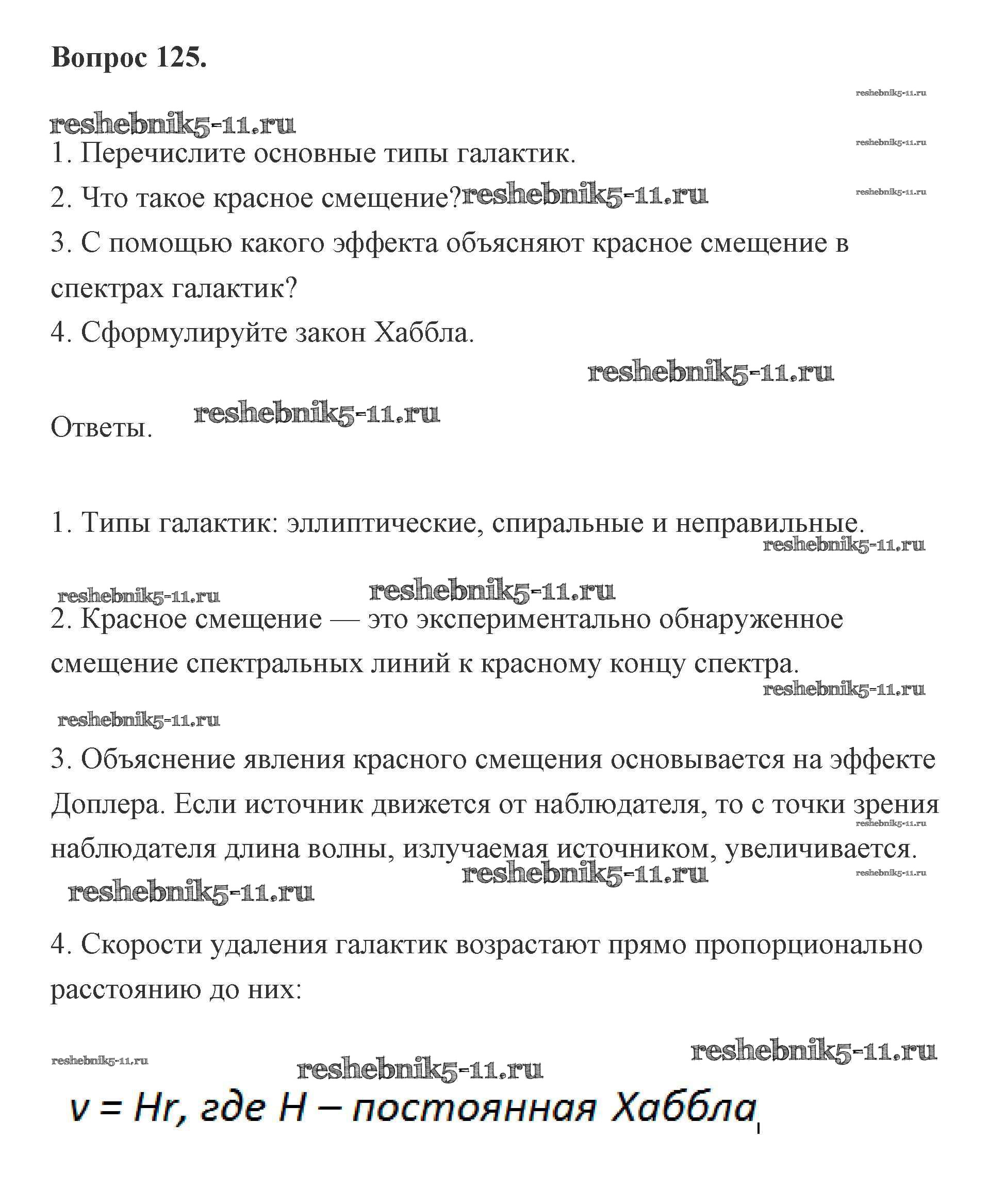 Готовая домашняя работа с ответами по Физике за 11 класс Мякишев, Буховцев, Чаругин, Николаева, Парфеньтьева Учебник Базовый и углубленный уровень Просвещение 2019 ФГОС - Вопросы 125