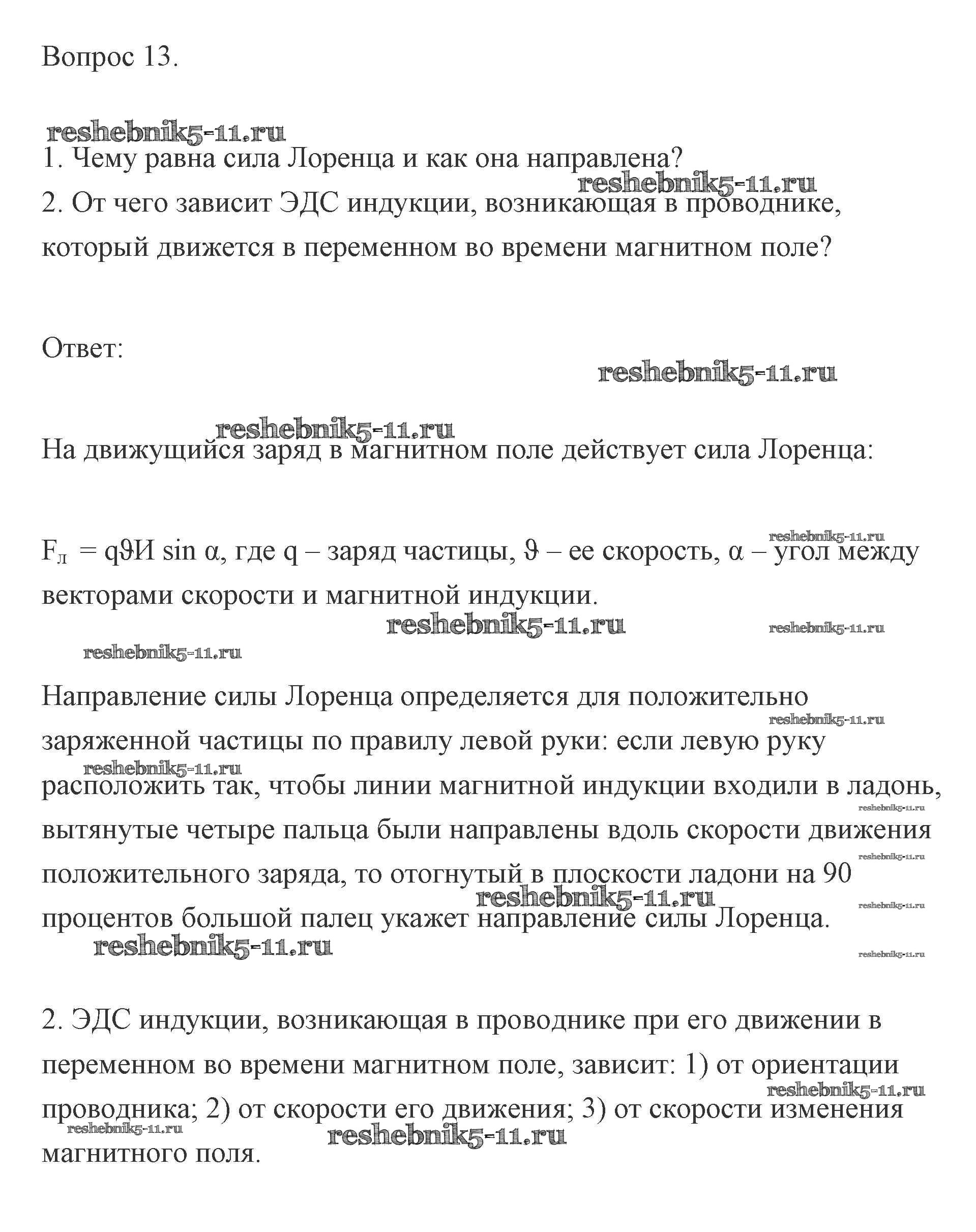Готовая домашняя работа с ответами по Физике за 11 класс Мякишев, Буховцев, Чаругин, Николаева, Парфеньтьева Учебник Базовый и углубленный уровень Просвещение 2019 ФГОС - Вопросы 13