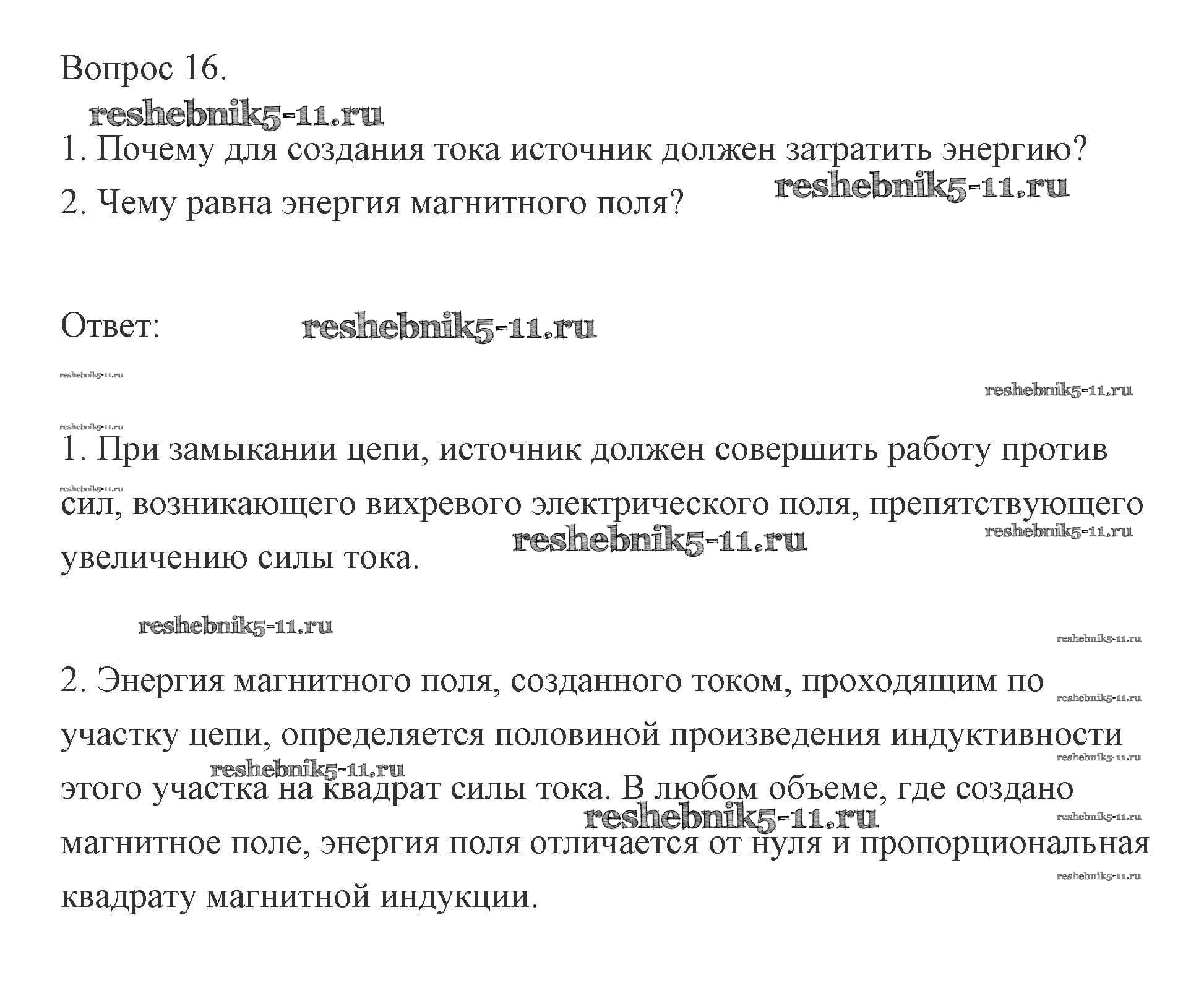 Готовая домашняя работа с ответами по Физике за 11 класс Мякишев, Буховцев, Чаругин, Николаева, Парфеньтьева Учебник Базовый и углубленный уровень Просвещение 2019 ФГОС - Вопросы 16