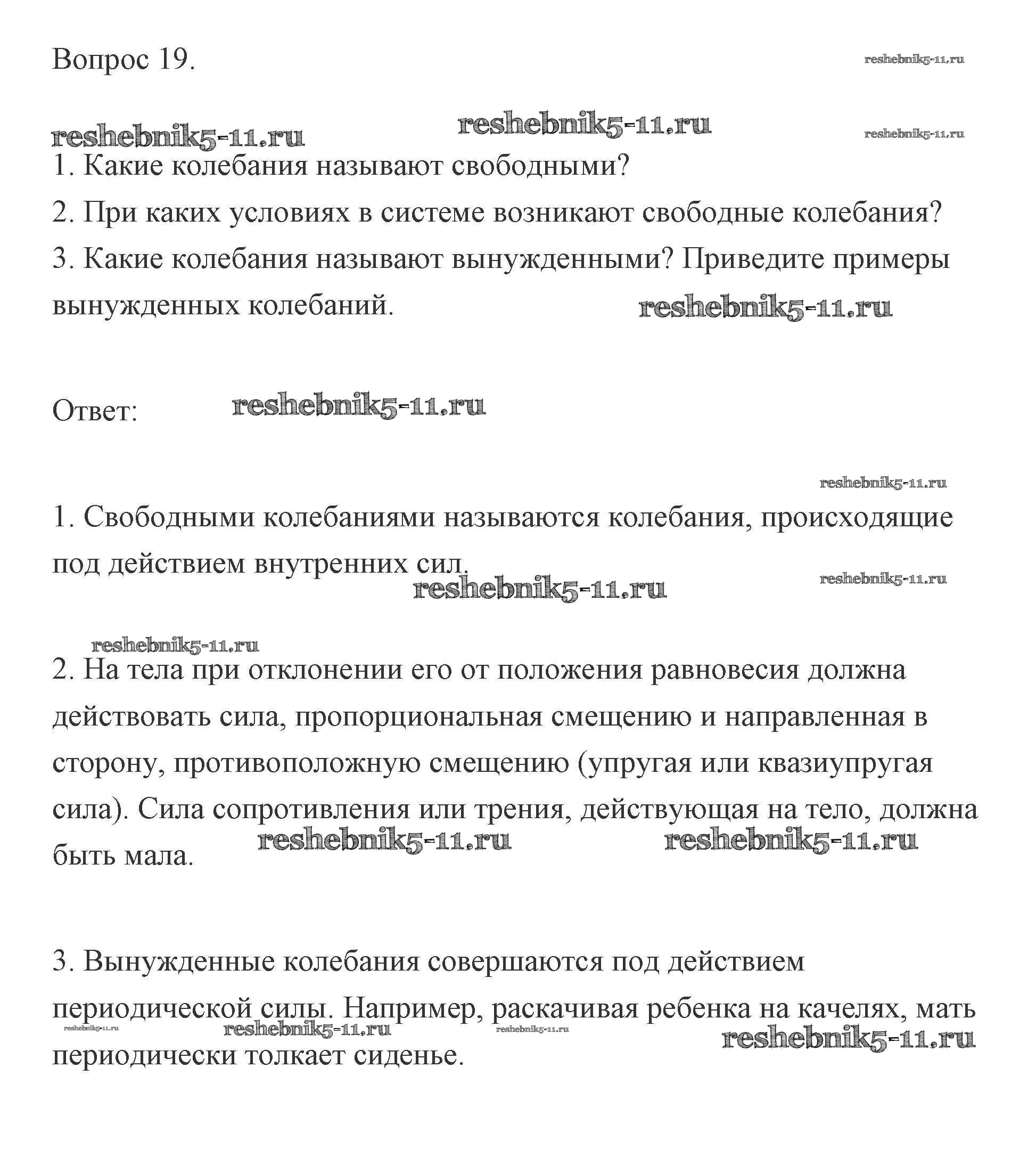 Готовая домашняя работа с ответами по Физике за 11 класс Мякишев, Буховцев, Чаругин, Николаева, Парфеньтьева Учебник Базовый и углубленный уровень Просвещение 2019 ФГОС - Вопросы 19