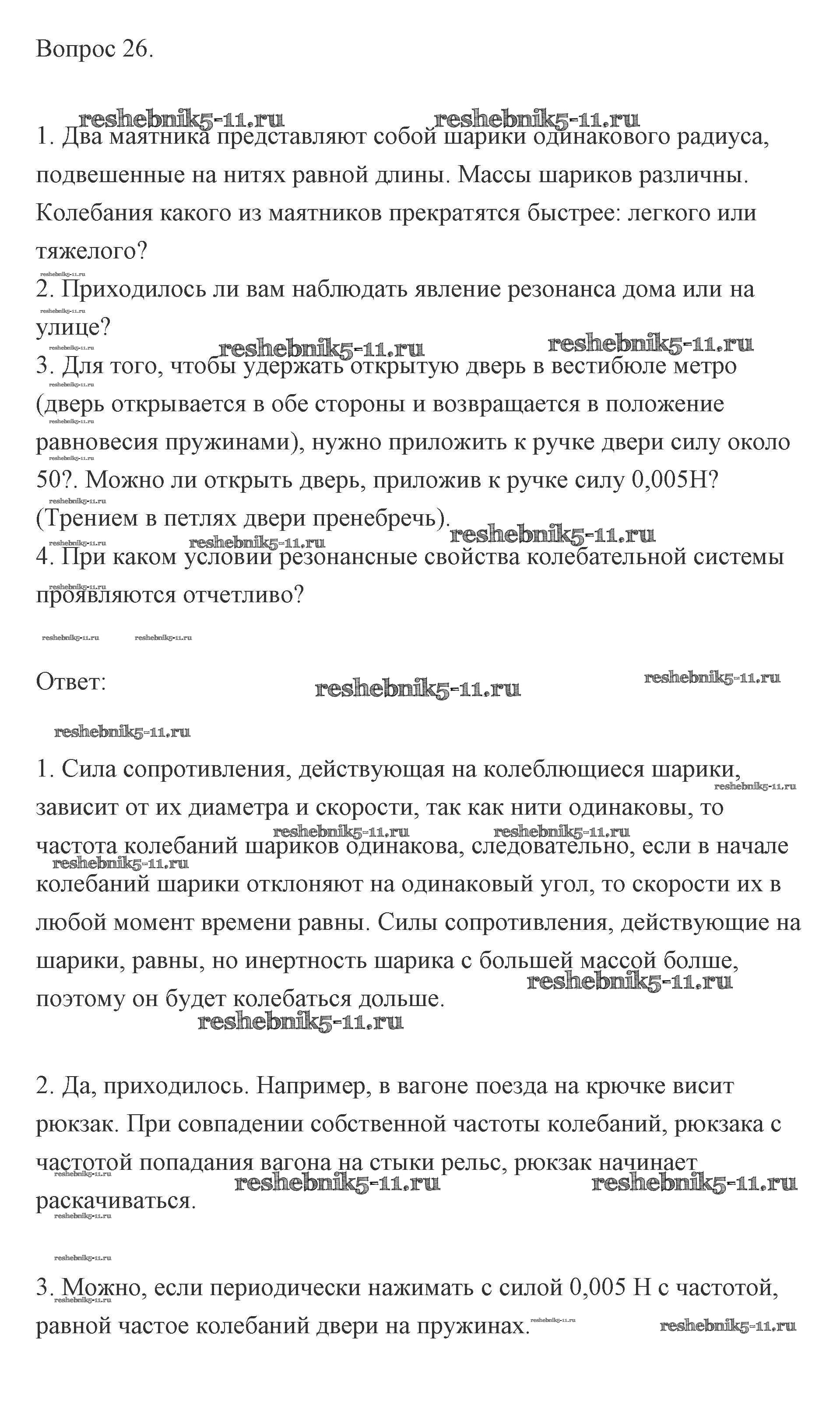 Готовая домашняя работа с ответами по Физике за 11 класс Мякишев, Буховцев, Чаругин, Николаева, Парфеньтьева Учебник Базовый и углубленный уровень Просвещение 2019 ФГОС - Вопросы 26