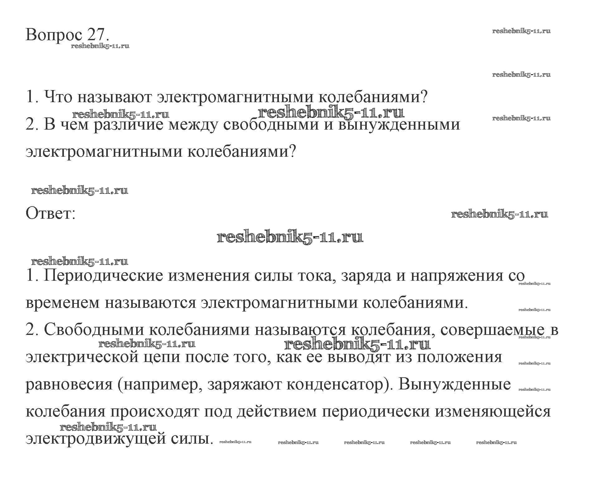 Готовая домашняя работа с ответами по Физике за 11 класс Мякишев, Буховцев, Чаругин, Николаева, Парфеньтьева Учебник Базовый и углубленный уровень Просвещение 2019 ФГОС - Вопросы 27