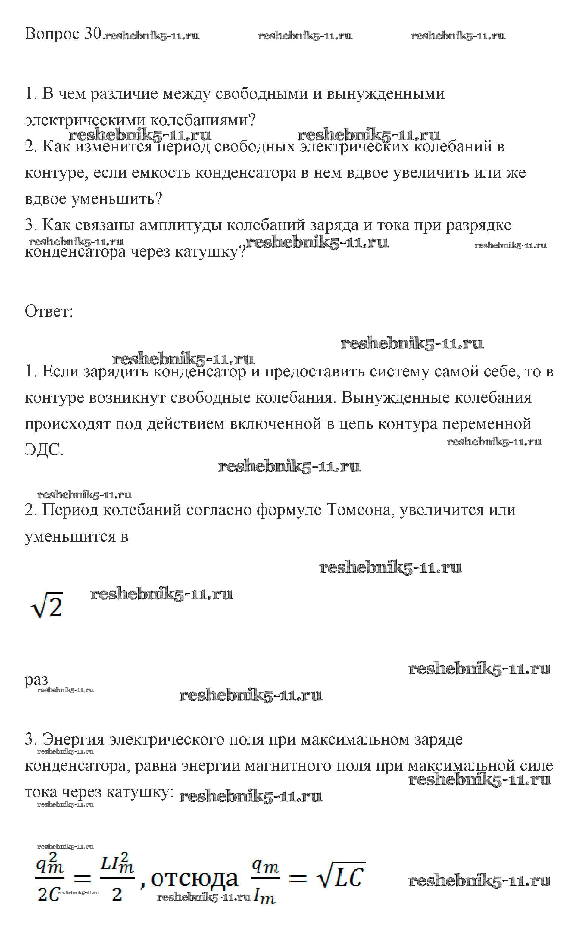 Готовая домашняя работа с ответами по Физике за 11 класс Мякишев, Буховцев, Чаругин, Николаева, Парфеньтьева Учебник Базовый и углубленный уровень Просвещение 2019 ФГОС - Вопросы 30