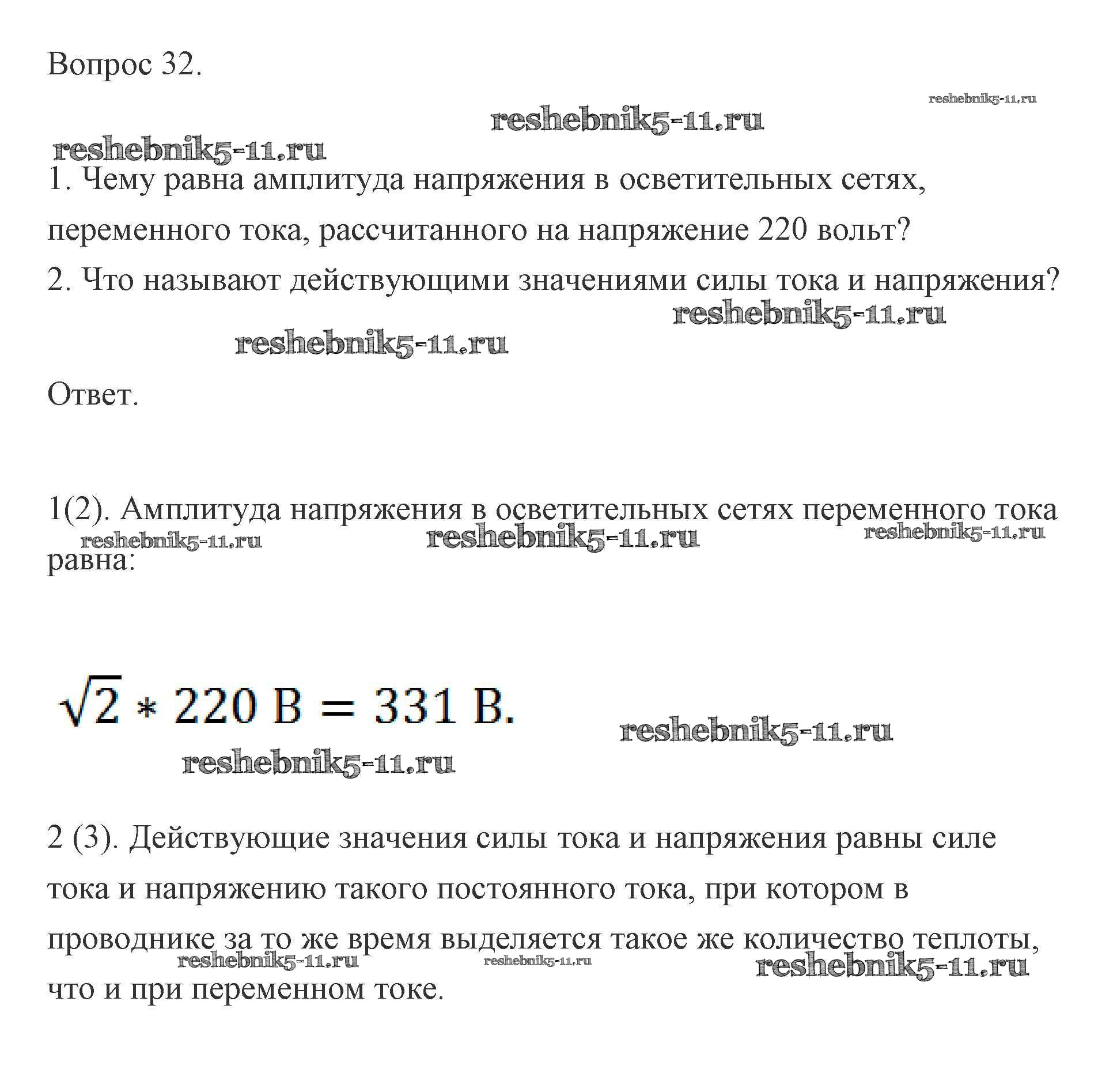 Готовая домашняя работа с ответами по Физике за 11 класс Мякишев, Буховцев, Чаругин, Николаева, Парфеньтьева Учебник Базовый и углубленный уровень Просвещение 2019 ФГОС - Вопросы 32