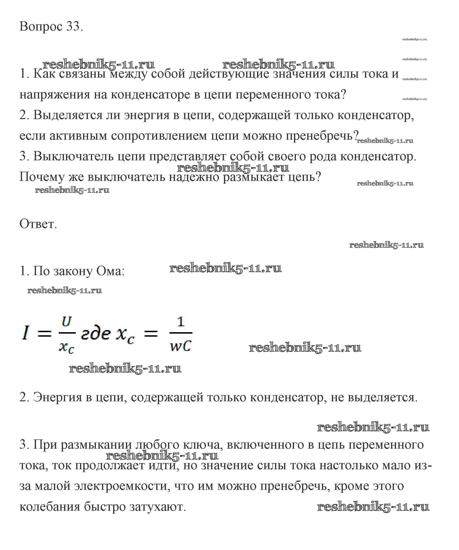 Готовая домашняя работа с ответами по Физике за 11 класс Мякишев, Буховцев, Чаругин, Николаева, Парфеньтьева Учебник Базовый и углубленный уровень Просвещение 2019 ФГОС - Вопросы 33