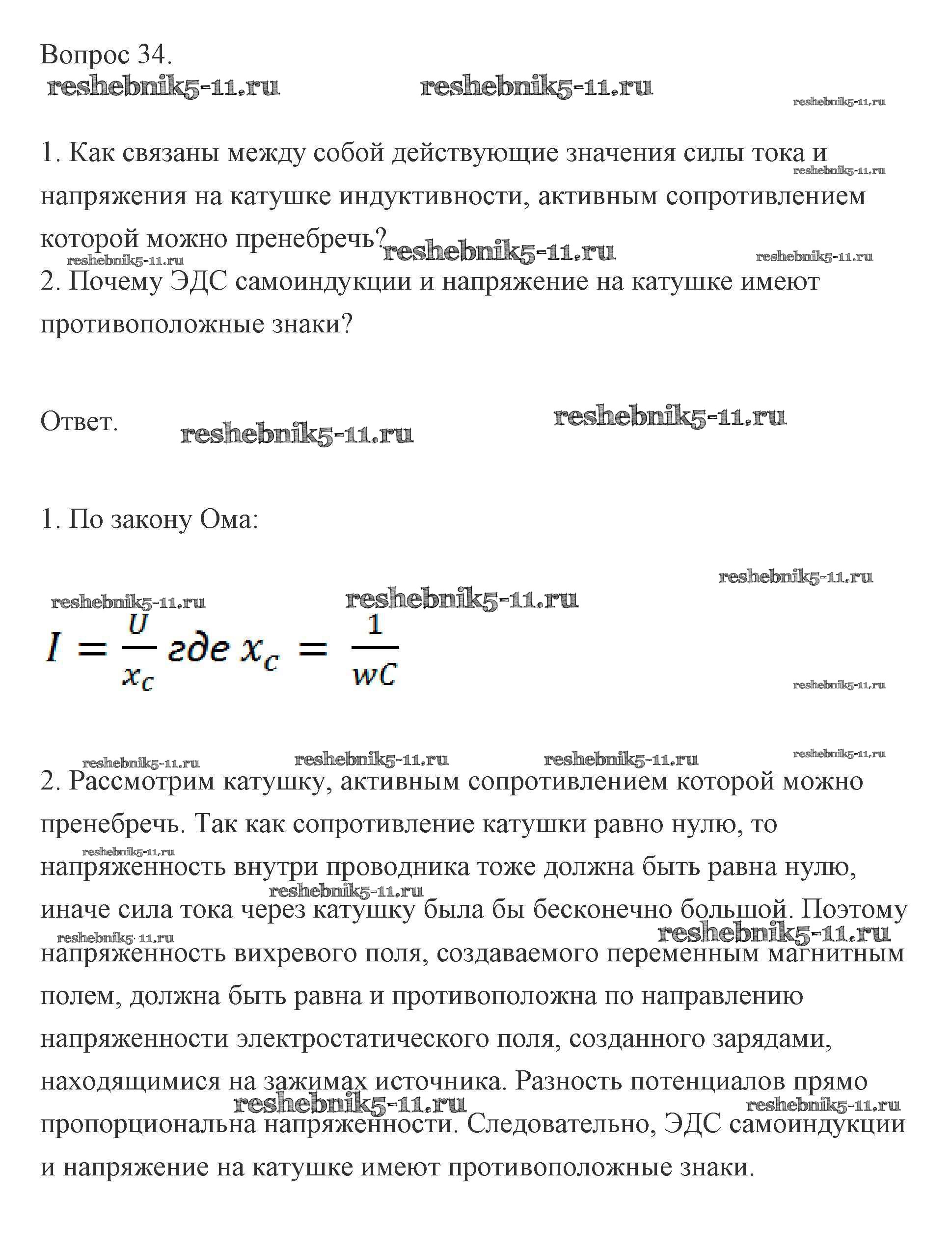 Готовая домашняя работа с ответами по Физике за 11 класс Мякишев, Буховцев, Чаругин, Николаева, Парфеньтьева Учебник Базовый и углубленный уровень Просвещение 2019 ФГОС - Вопросы 34