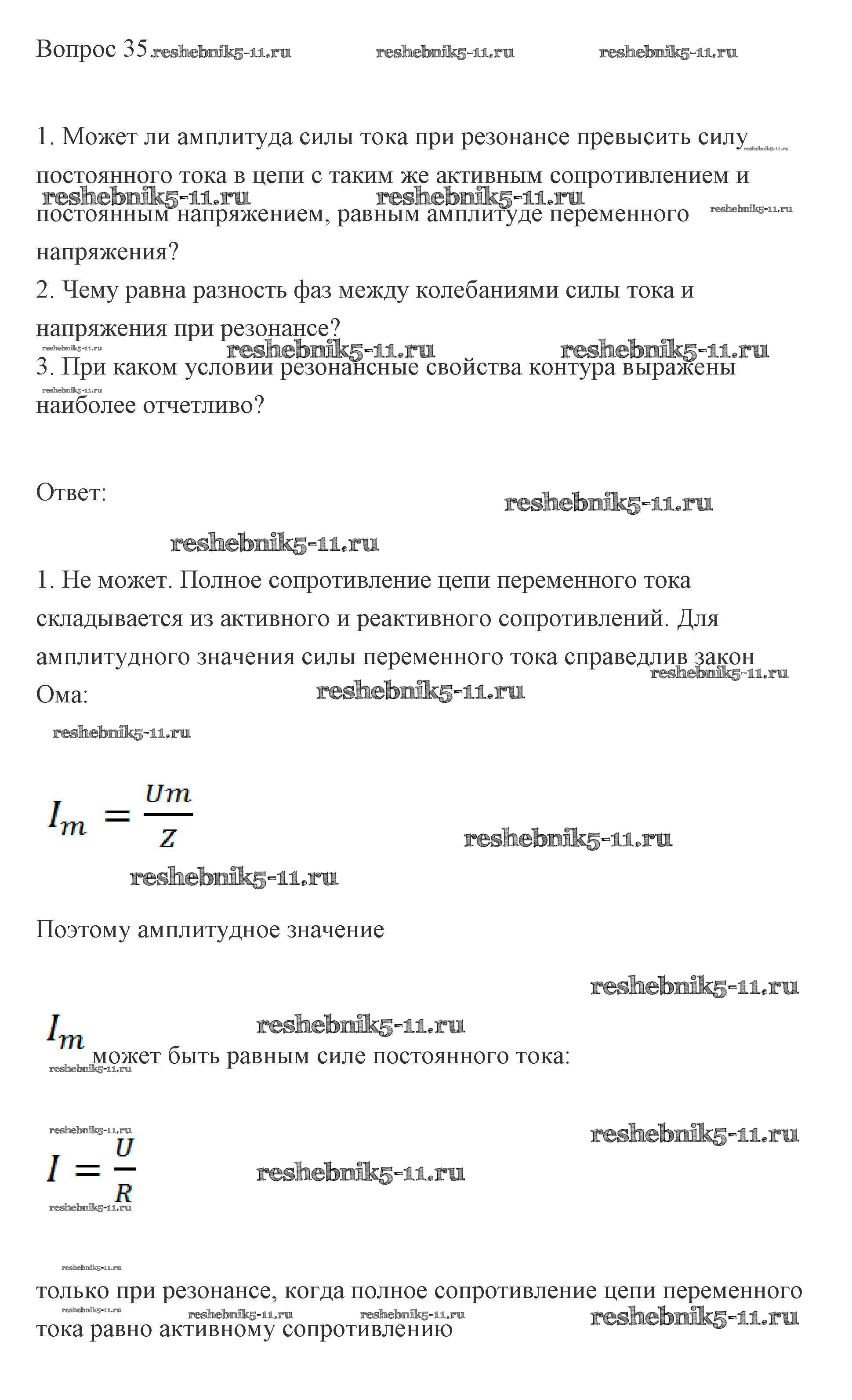 Готовая домашняя работа с ответами по Физике за 11 класс Мякишев, Буховцев, Чаругин, Николаева, Парфеньтьева Учебник Базовый и углубленный уровень Просвещение 2019 ФГОС - Вопросы 35