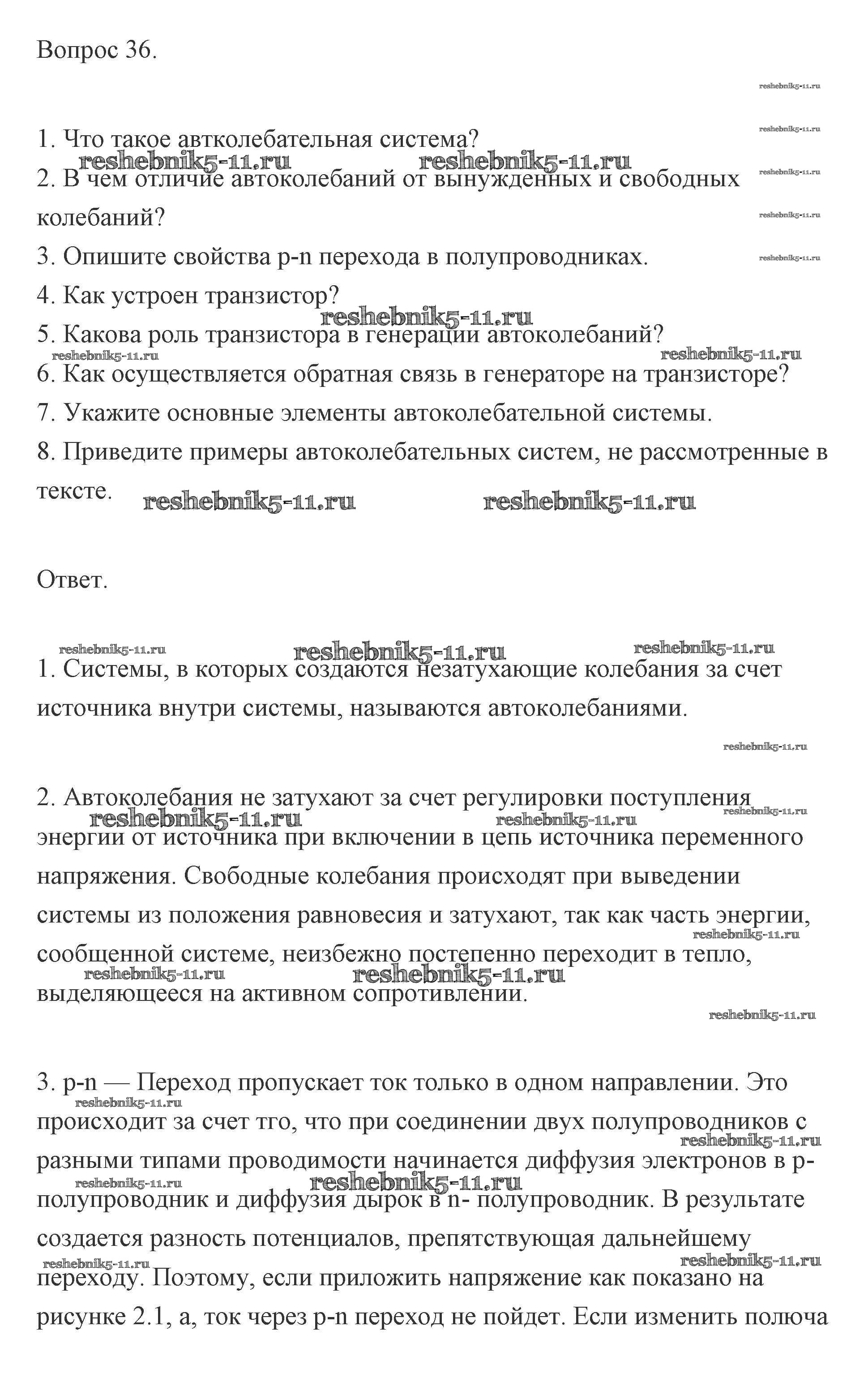 Готовая домашняя работа с ответами по Физике за 11 класс Мякишев, Буховцев, Чаругин, Николаева, Парфеньтьева Учебник Базовый и углубленный уровень Просвещение 2019 ФГОС - Вопросы 36
