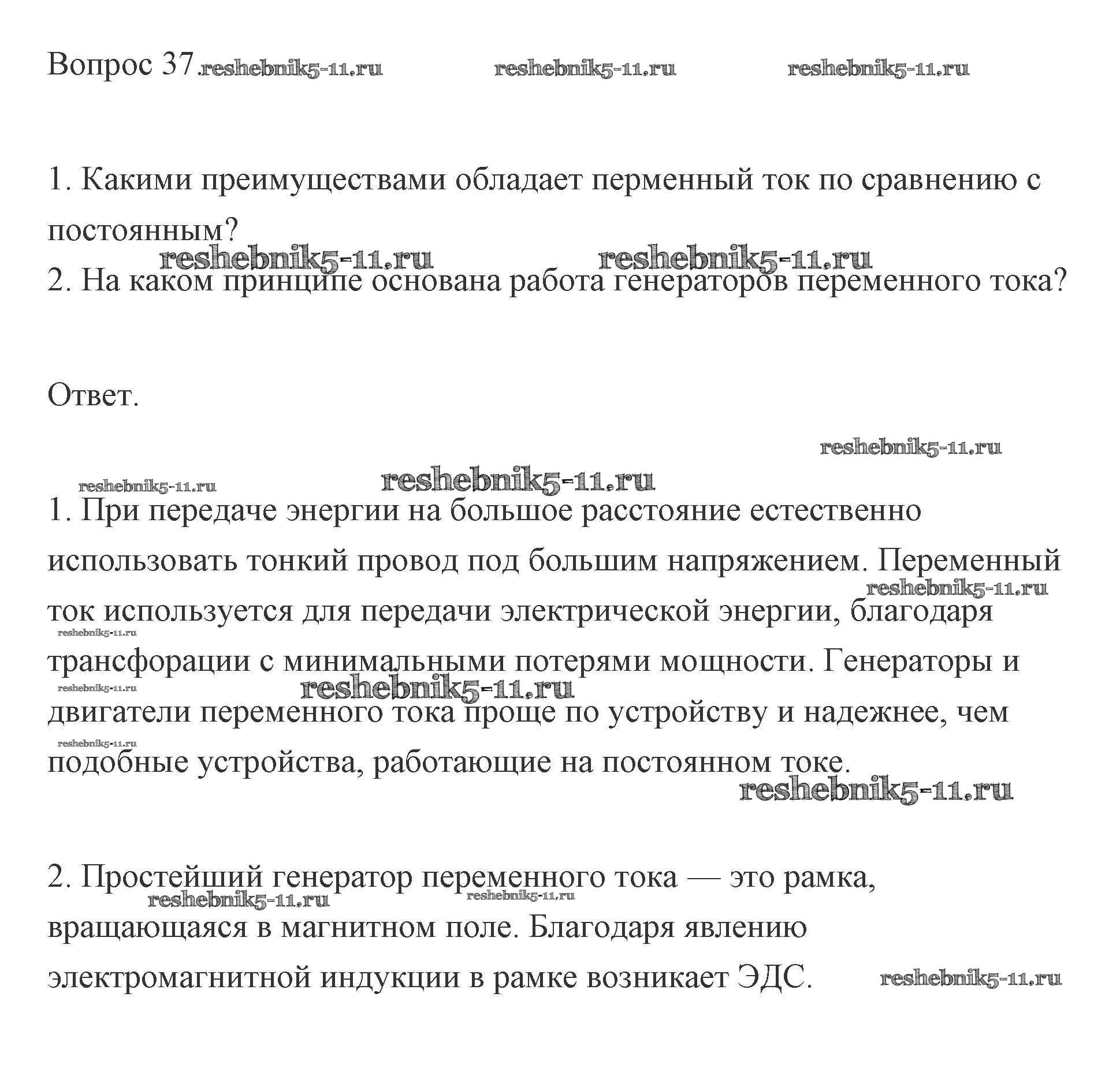 Готовая домашняя работа с ответами по Физике за 11 класс Мякишев, Буховцев, Чаругин, Николаева, Парфеньтьева Учебник Базовый и углубленный уровень Просвещение 2019 ФГОС - Вопросы 37