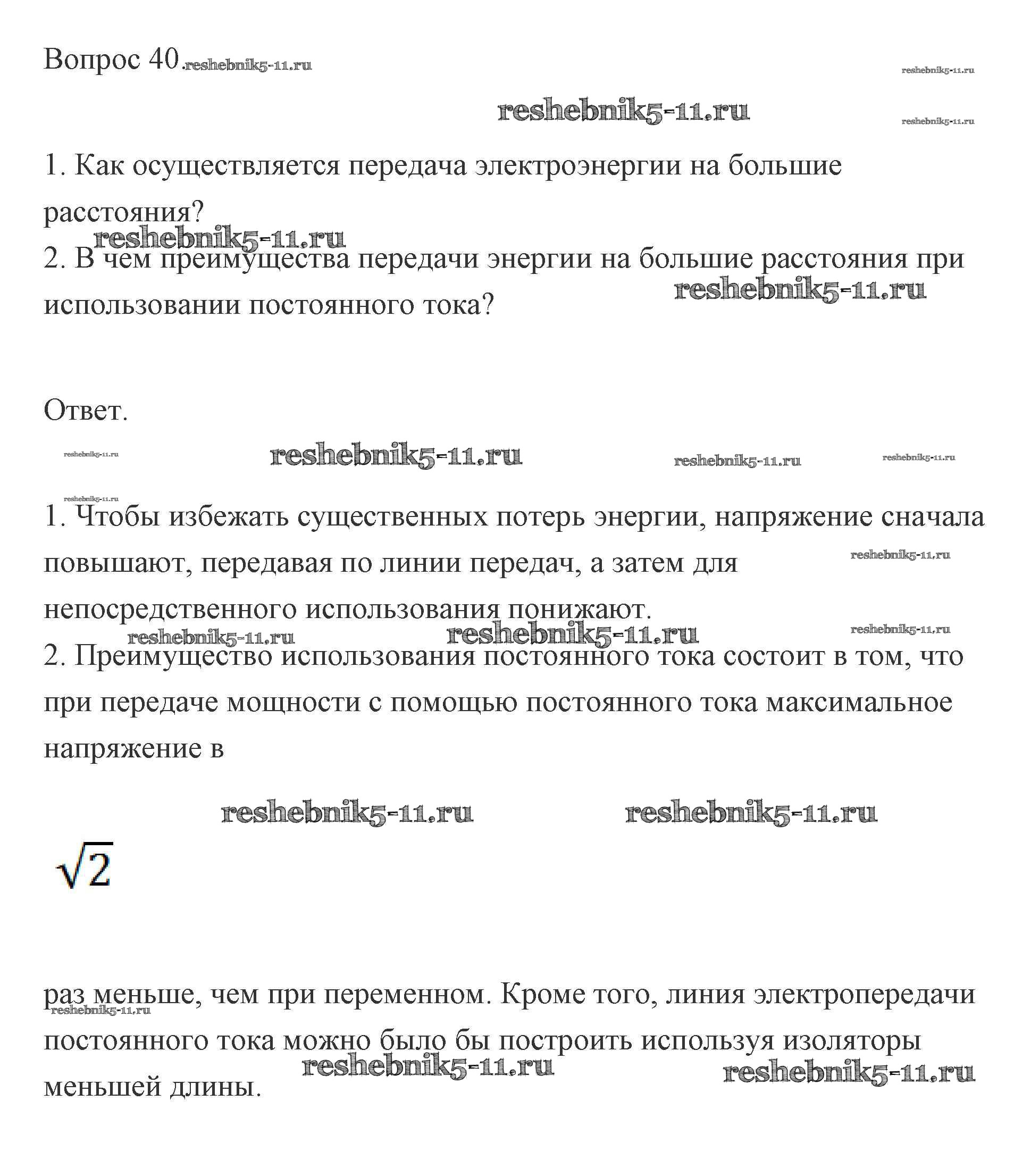 Готовая домашняя работа с ответами по Физике за 11 класс Мякишев, Буховцев, Чаругин, Николаева, Парфеньтьева Учебник Базовый и углубленный уровень Просвещение 2019 ФГОС - Вопросы 40