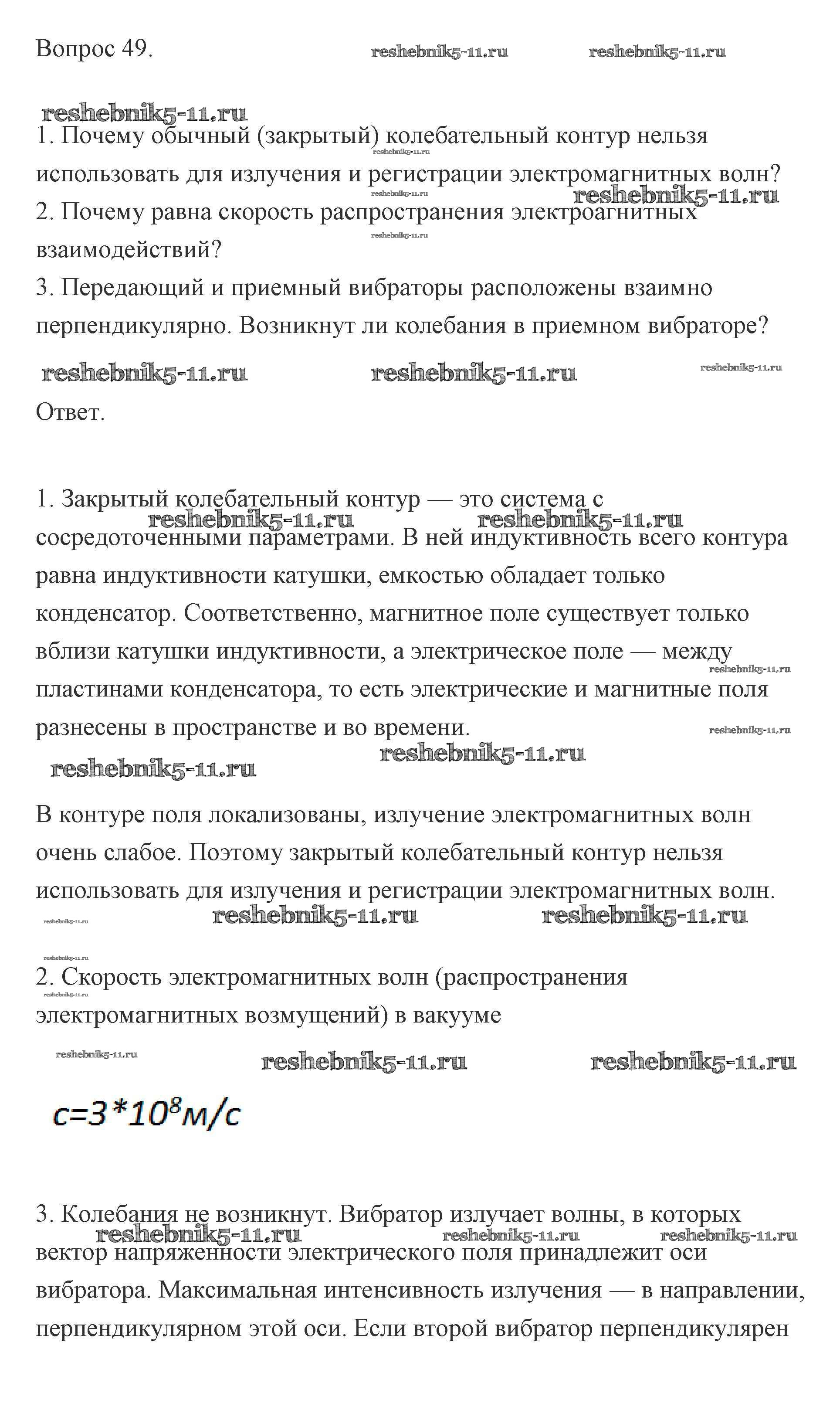 Готовая домашняя работа с ответами по Физике за 11 класс Мякишев, Буховцев, Чаругин, Николаева, Парфеньтьева Учебник Базовый и углубленный уровень Просвещение 2019 ФГОС - Вопросы 49