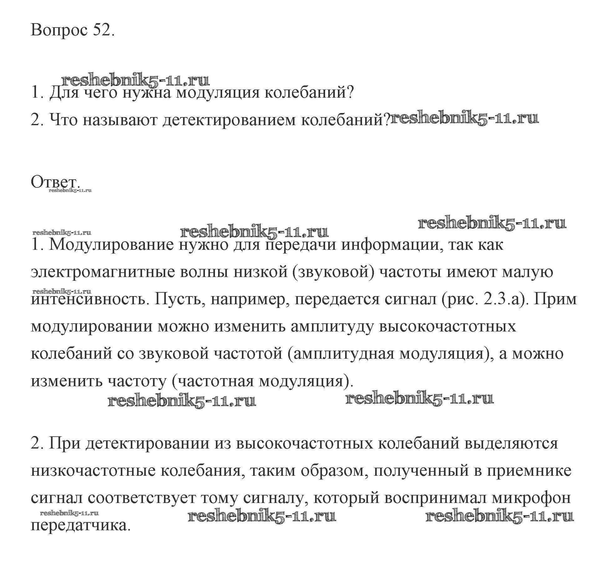 Готовая домашняя работа с ответами по Физике за 11 класс Мякишев, Буховцев, Чаругин, Николаева, Парфеньтьева Учебник Базовый и углубленный уровень Просвещение 2019 ФГОС - Вопросы 52