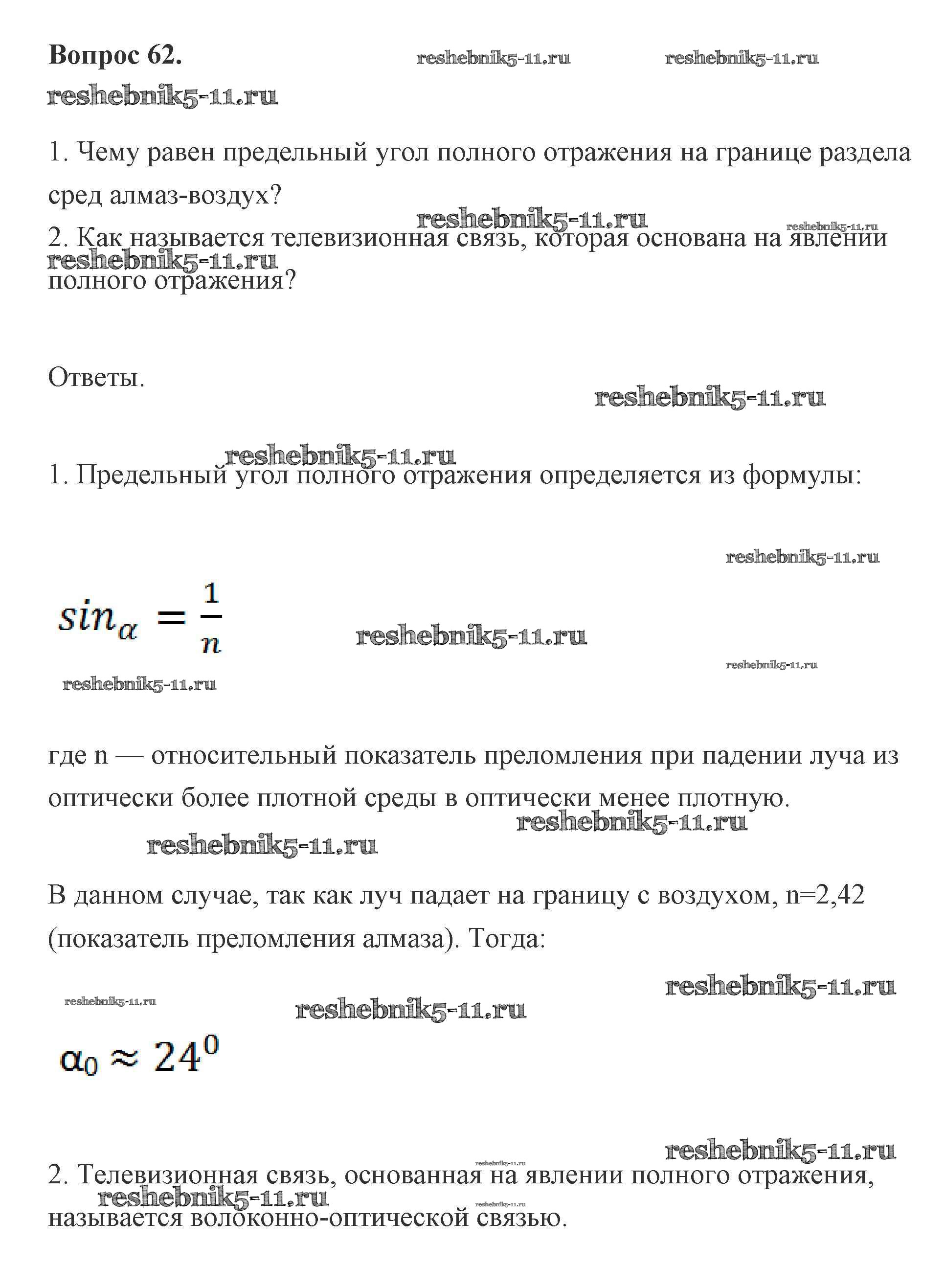 Готовая домашняя работа с ответами по Физике за 11 класс Мякишев, Буховцев, Чаругин, Николаева, Парфеньтьева Учебник Базовый и углубленный уровень Просвещение 2019 ФГОС - Вопросы 62