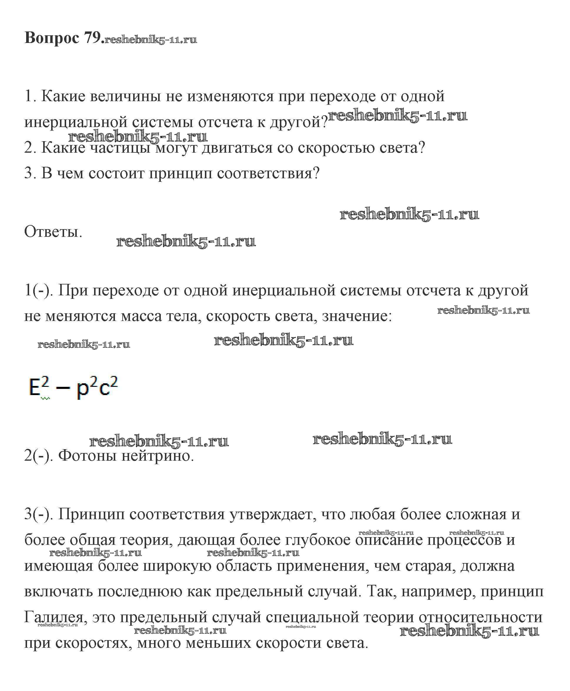 Готовая домашняя работа с ответами по Физике за 11 класс Мякишев, Буховцев, Чаругин, Николаева, Парфеньтьева Учебник Базовый и углубленный уровень Просвещение 2019 ФГОС - Вопросы 79