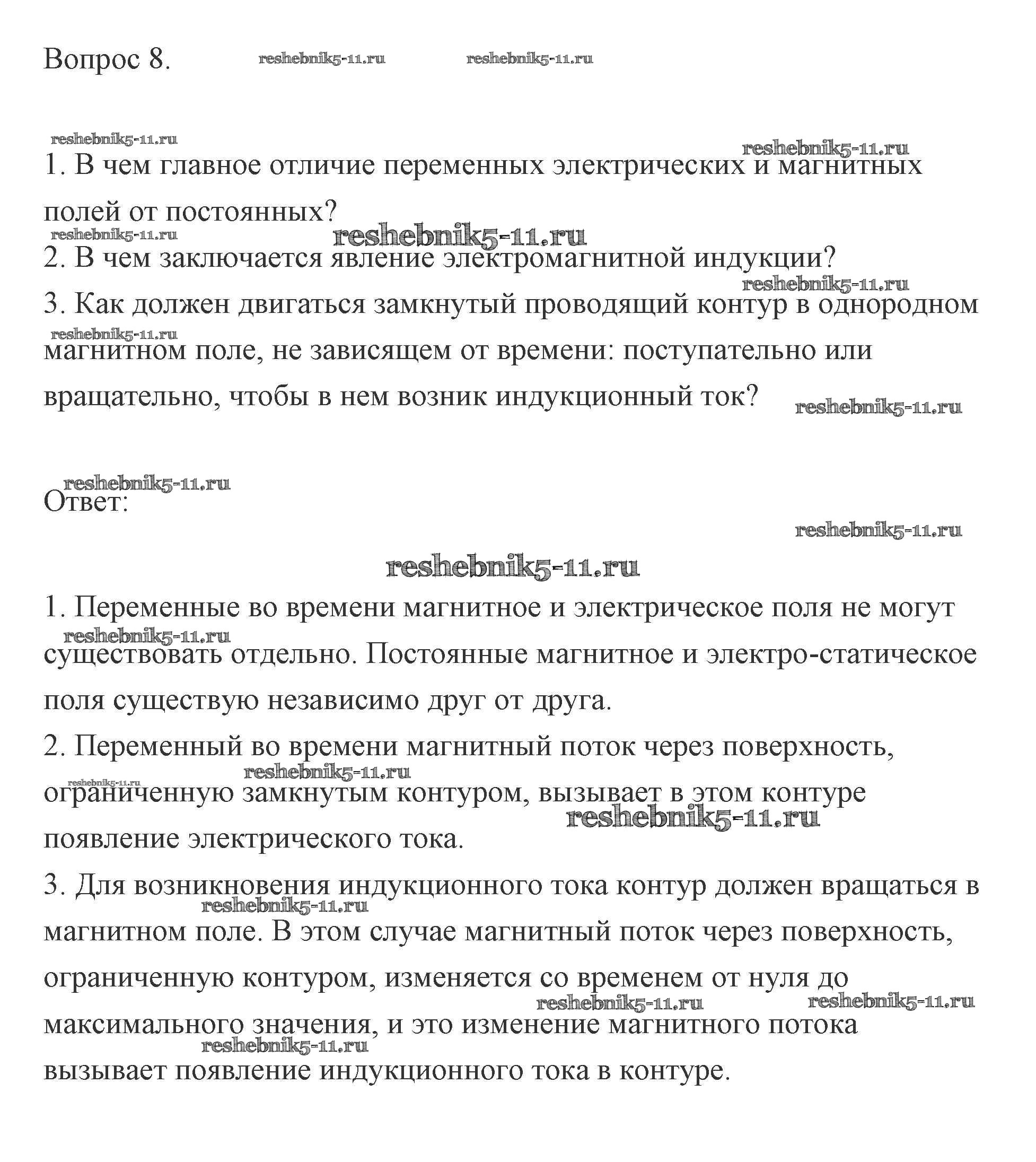 Готовая домашняя работа с ответами по Физике за 11 класс Мякишев, Буховцев, Чаругин, Николаева, Парфеньтьева Учебник Базовый и углубленный уровень Просвещение 2019 ФГОС - Вопросы 8
