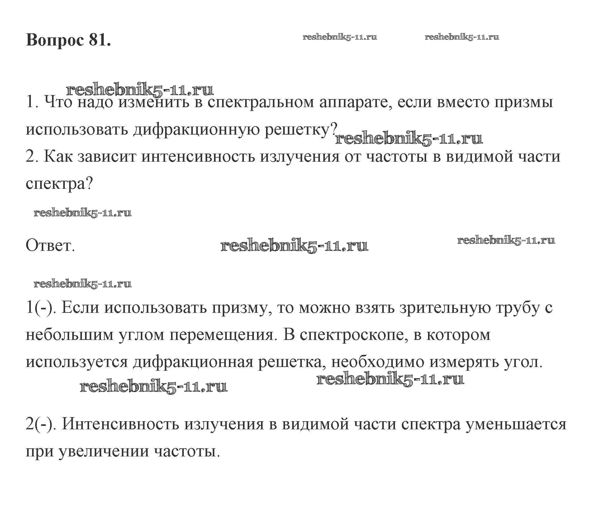Готовая домашняя работа с ответами по Физике за 11 класс Мякишев, Буховцев, Чаругин, Николаева, Парфеньтьева Учебник Базовый и углубленный уровень Просвещение 2019 ФГОС - Вопросы 81
