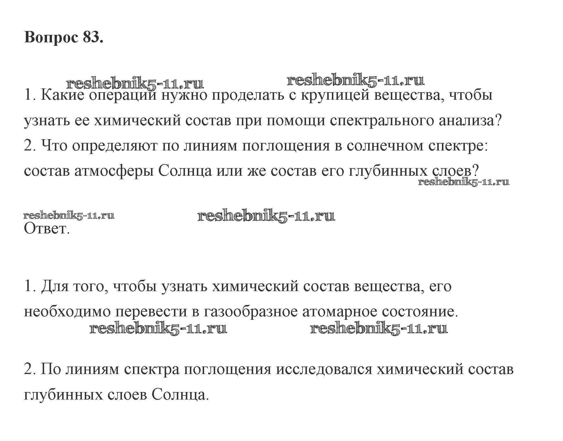 Готовая домашняя работа с ответами по Физике за 11 класс Мякишев, Буховцев, Чаругин, Николаева, Парфеньтьева Учебник Базовый и углубленный уровень Просвещение 2019 ФГОС - Вопросы 83