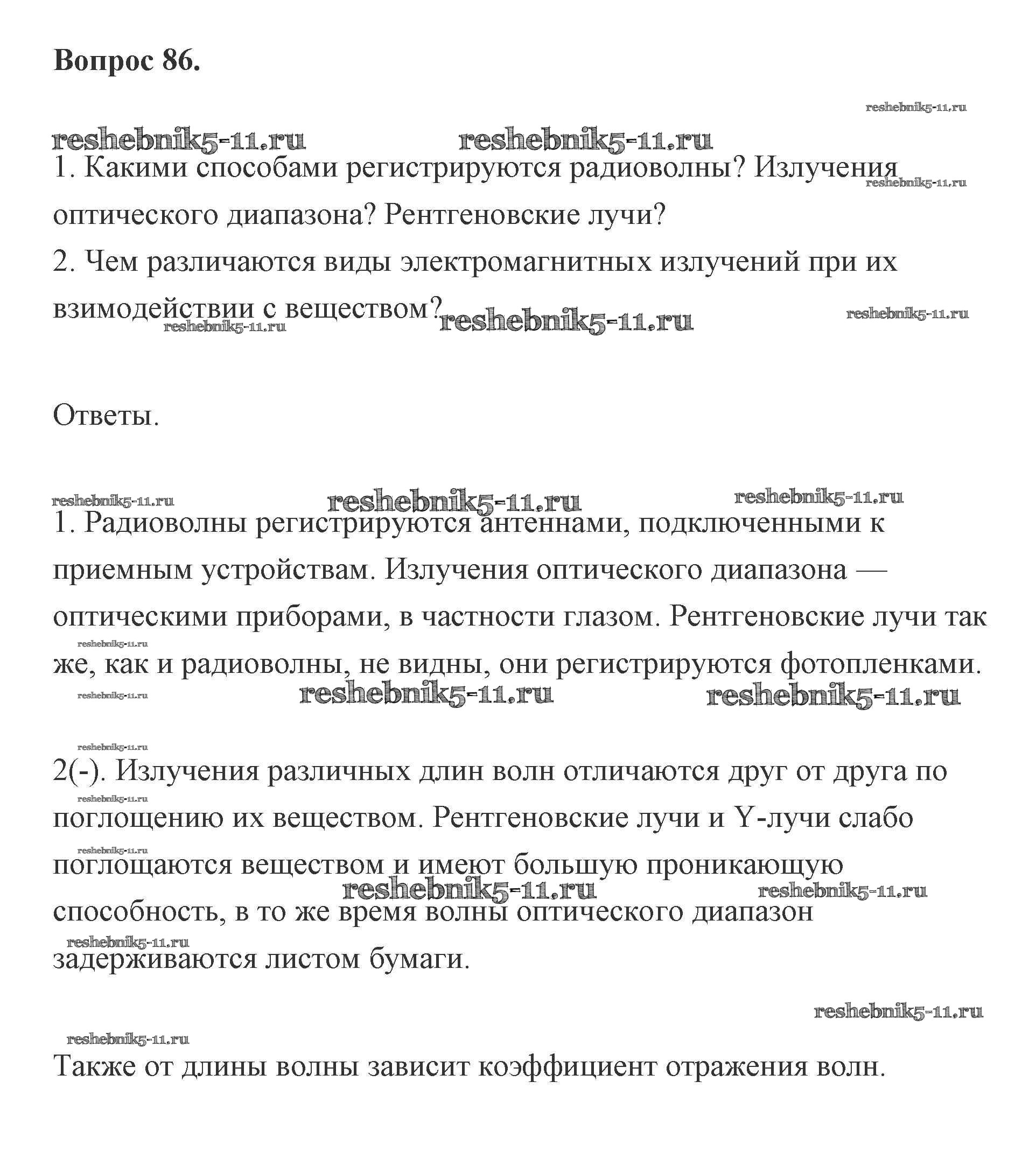 Готовая домашняя работа с ответами по Физике за 11 класс Мякишев, Буховцев, Чаругин, Николаева, Парфеньтьева Учебник Базовый и углубленный уровень Просвещение 2019 ФГОС - Вопросы 86