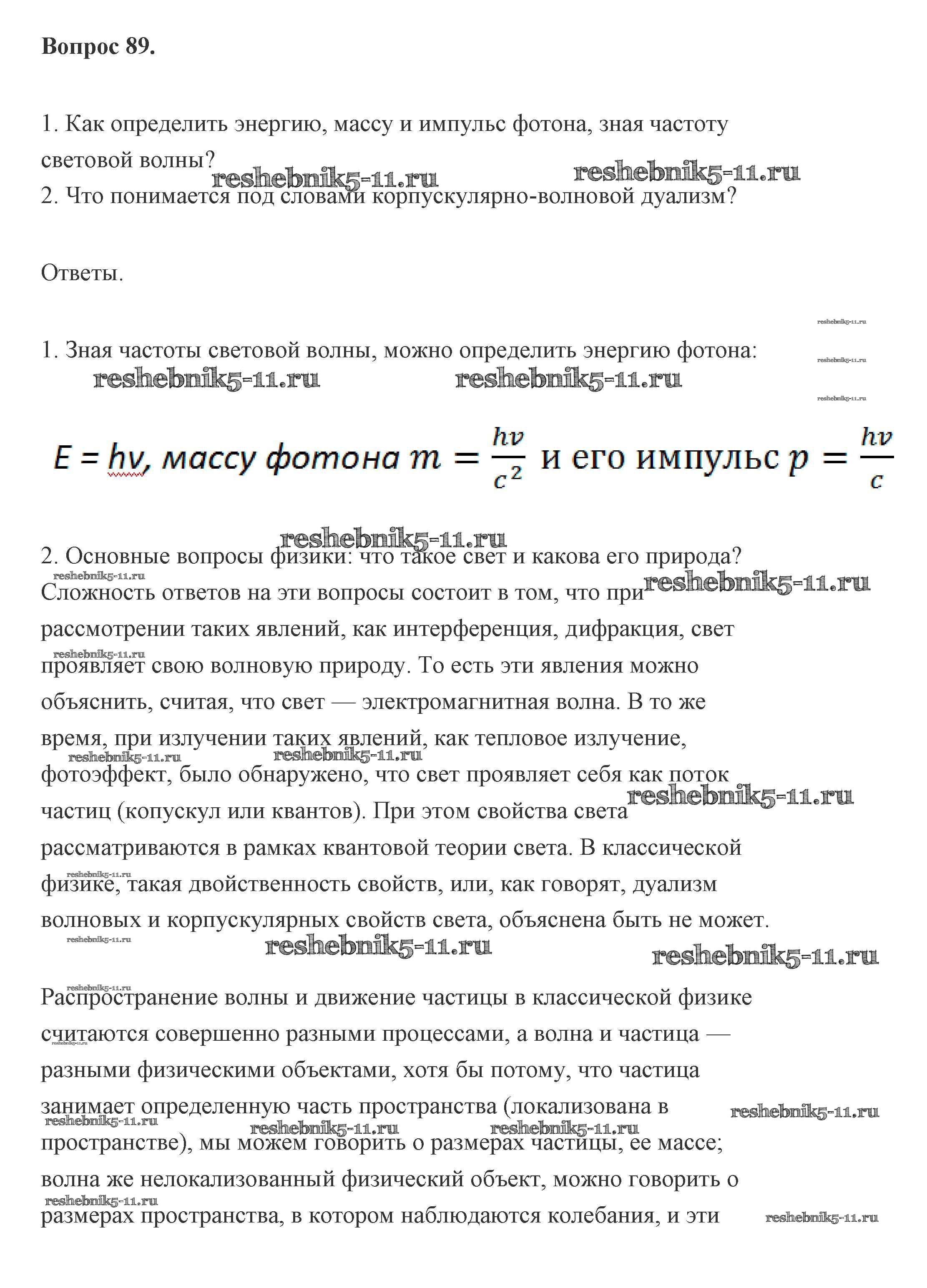 Готовая домашняя работа с ответами по Физике за 11 класс Мякишев, Буховцев, Чаругин, Николаева, Парфеньтьева Учебник Базовый и углубленный уровень Просвещение 2019 ФГОС - Вопросы 89